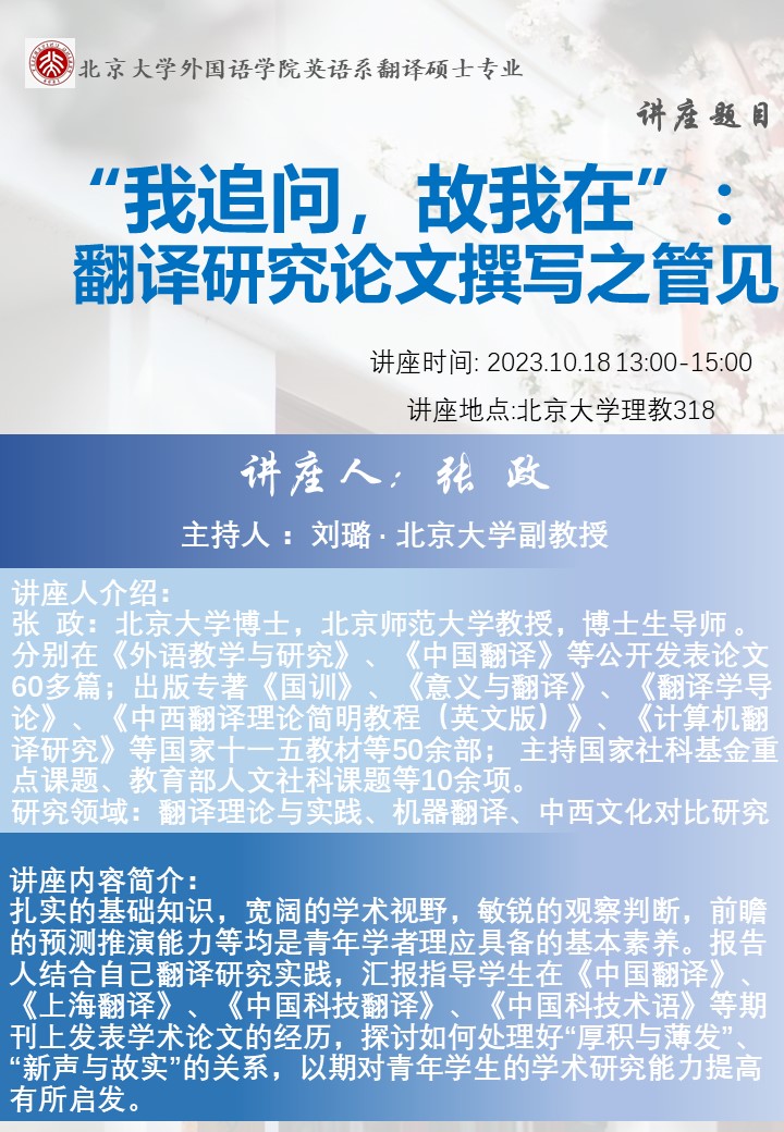讲座预告:“我追问 故我在”——翻译研究论文撰写之管见