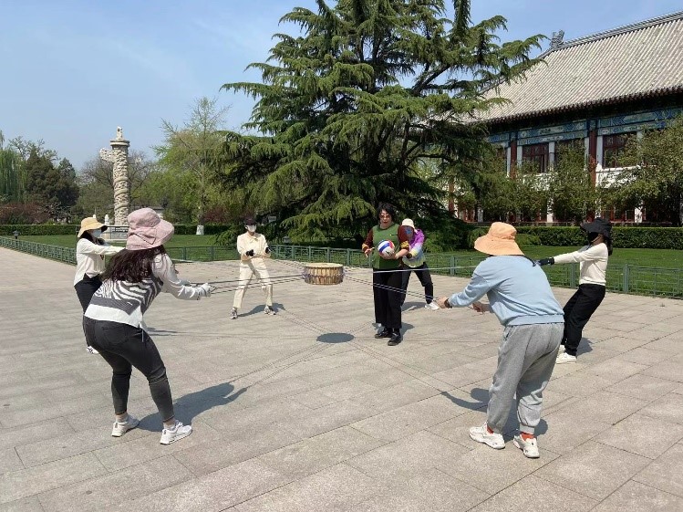 草长莺飞,晴空万里,为迎接北京大学2022年运动会,自4月18日起,每天上午10点半,报名运动会同心鼓项目的外院教职工们在外院工会主席、副院长张冬梅,外院工会常务副主席倪丽慧的带领下,齐聚在外文楼前花坛空地处进行同心鼓项目的集中训练。