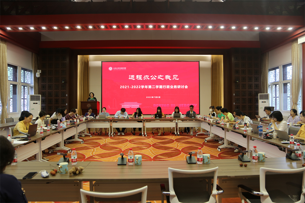 2022年7月8日上午,外国语学院2021-2022第二学期行政业务研讨会在民主楼208会议室召开,本次会议的主题是“远程办公之我见”。会议由副院长张冬梅主持,党委书记李淑静、党委副书记王恒以及全体行政人员参加了本次研讨会。