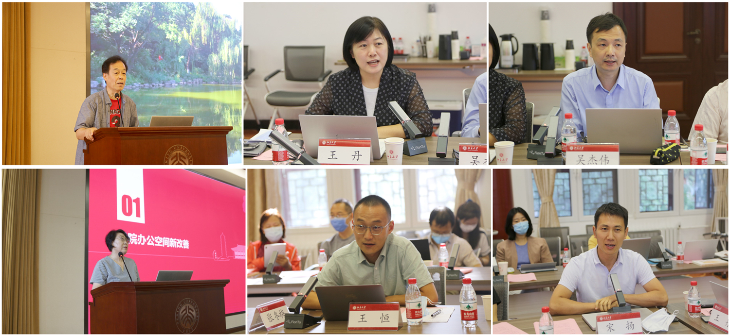 李淑静传达了中共北京大学第十四次党代会党委工作报告精神和北京大学2022年暑期战略研讨会精神。李淑静表示,党委工作报告对过去五年北京大学取得的成绩进行了凝练总结,也对新征程上学校肩负的使命进行了详细阐述,明确了学校未来五年乃至更长一个时期在领跑中国特色世界一流大学建设与持续推进新时代党的建设方面的重点工作任务。暑期战略研讨会围绕着加强党建和思想政治工作、持续加快“双一流”建设、全面深化综合改革、抓好“三大基础性工作”等重要议题进行深入研讨,就学校改革发展提出思路与办法。她表示相关工作思路、举措对学院具有重要指导意义,希望各位负责人认真学习党代会和研讨会精神,落实学校相关部署和要求,为北京大学新一轮“双一流”建设增砖添瓦,以实际行动迎接党的二十大胜利召开。