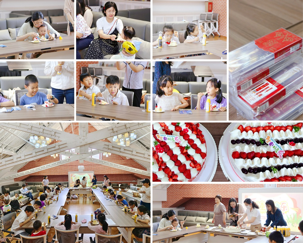 随后,两院教职工及其子女来到民主楼三层公共空间。享用六一节特别定制蛋糕、果汁。现场欢声笑语、童趣十足。外国语学院工会主席张冬梅代表工会向参加亲子活动的教职工及其子女表示感谢,并为小朋友送上精美的文具套装,祝福他们学习进步、快乐成长。活动结束后,小朋友们主动帮忙收拾整理,一起为公共空间干净整洁出一份力。