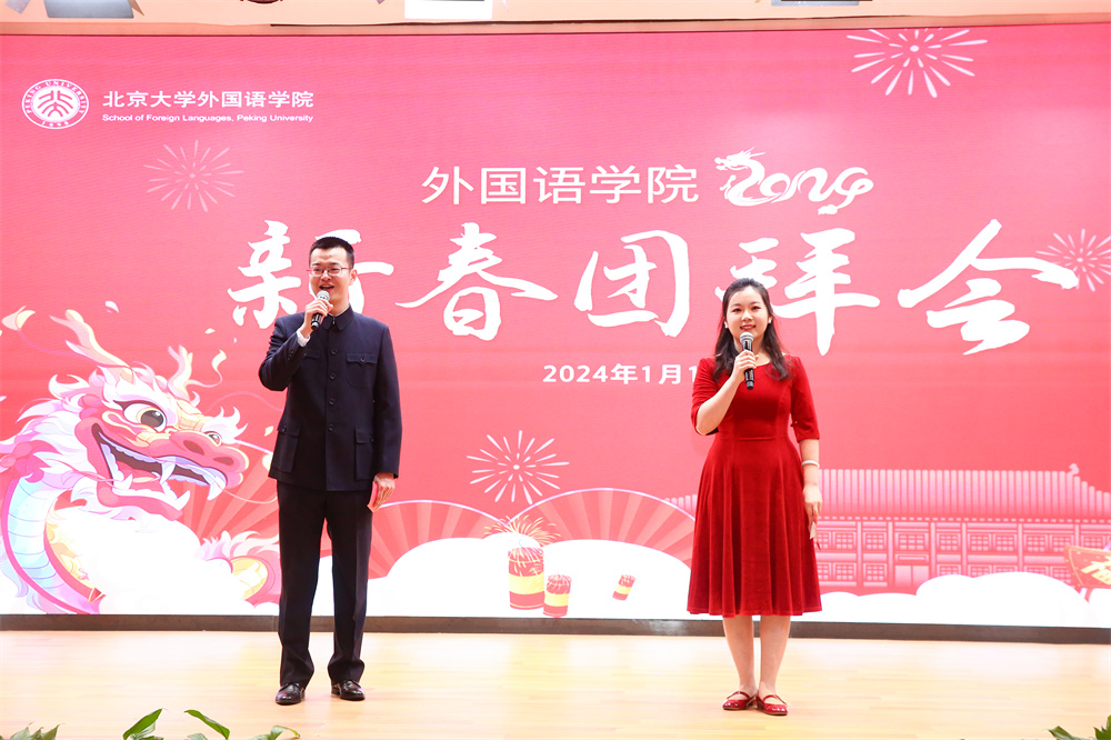 一元复始,万象更新。2024年1月10日下午,博雅国际酒店中华厅张灯结彩、暖意融融,开云官方在线入口2024年新春团拜会在这里举行。伴随着风格迥异的多语种新年歌曲,2023年度学院发生的件件大事、喜事缓缓呈现在屏幕之上。北大外院220余位在职和离退休教师欢聚一堂,互道新年祝福、共忆往昔美好、齐话学院未来。在主持人德语系助理教授毛明超、阿语系博士后孔雀温馨开场后,新春团拜会正式拉开序幕。