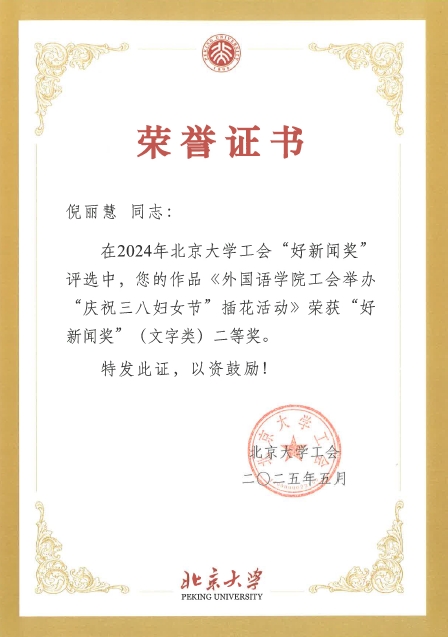 外国语学院工会在北京大学工会2024年新闻工作先进奖和好新闻奖评选中喜获佳绩