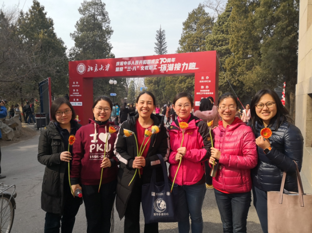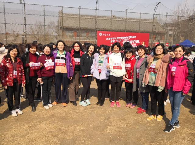 烟花三月,草长莺飞。在这个春暖花开的日子里我们迎来了第109个国际劳动妇女节。外国语学院女教工为庆祝建国70周年并喜迎‘三.八’国际劳动妇女节,参加了由北京大学工会联合体育教研部举办的“北京大学女教职工环湖接力跑”。