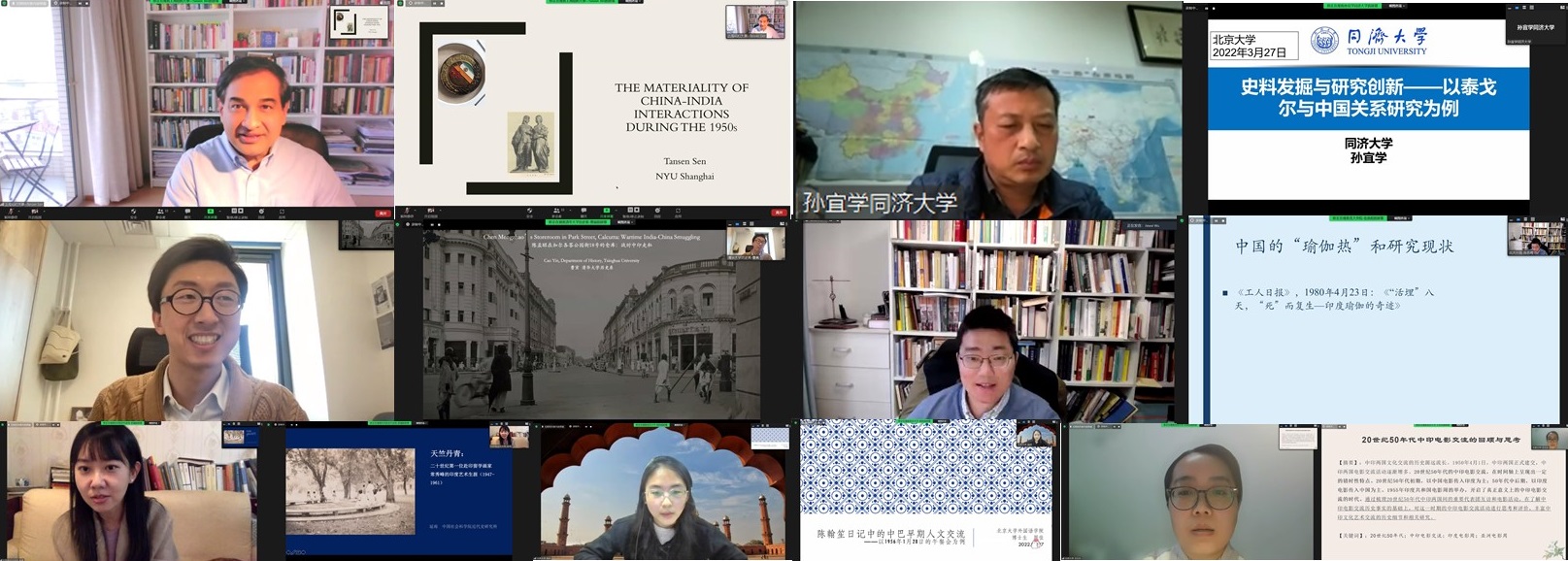 捐赠仪式后,“新史料与近代中印人文交流研究”工作坊正式开启,上半场共有四位学者发言。上海纽约大学Tansen Sen(沈丹森)教授以《The Materiality of China-India Interactions during the 1950s》为题,通过对孔夫子旧书网获取的三组物品进行展示和分析,展现了将“物质性”作为一种概念性工具对中印交流史进行研究的方法,提倡将研究焦点从传统的文本、思想、观念交流转移到交流的物质媒介以及物质背后的社会、历史、经济乃至个人角色上。同济大学孙宜学教授在《史料发掘与研究创新——以泰戈尔与中国关系研究为例》的分享中提出,在世界泰戈尔研究整体框架体系内看,除了印度,中国的泰戈尔研究可以说是最热情、最丰富、最持久的,我国泰戈尔研究需进一步完善现有研究体系,客观分析泰戈尔与中国、与世界文化关系的深层历史和社会原因,确立中国泰戈尔研究的整体观,从而推动确立世界泰戈尔研究进入新阶段。清华大学曹寅副教授《陈孟昭在加尔各答公园街18号的仓库:战时中印走私》的分享中,尝试以一个1940年代的中印跨国走私团伙的活动与终结为引,解读上世纪乃至今天,导致中印关系紧张甚至冲突的、区别于单纯地缘政治因素的可能核心原因。开云官方在线入口助理教授张忞煜发言的题目是《来自印度的西式舶来品——瑜伽在现代中国的再引入(约1900-1950)》,该研究以刘仁航关于北美现代瑜伽的译作、神智学协会上海分支机构的瑜伽主题相关活动、英迪拉·德维(Indira Devi)及其弟子迈克尔·沃林(Michael Volin)两个西方人在上海开展系统瑜伽教学的始末为例,展现了20世纪上半叶“现代瑜伽”在上海短暂的传播热潮,对现代全球知识生产和传播网络背景下瑜伽在现代中国的早期传播史进行了探讨。