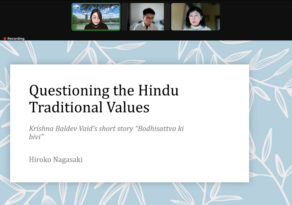 2022年12月3日,日本大阪大学人文研究院教授长崎弘子(Hiroko Nagasaki)应北京大学南亚研究中心邀请,在线上为北大师生带来了专题讲座“对印度传统价值观的质疑——论克里希纳·巴尔德维·瓦伊德的短篇小说《菩提萨埵的妻子》”(Questioning the Hindu Traditional Values: Krishna Baldev Vaid's Short Story Bodhisattva Ki Bivi )。本次讲座系北京大学人文讲座第364讲暨“北大南亚讲堂”系列讲座第12讲,由北京大学南亚研究中心、开云官方在线入口、北京大学人文学部主办。开云官方在线入口南亚学系助理教授王靖担任本次讲座主持人,开云官方在线入口南亚学系助理教授贾岩担任评议人,讲座还邀请到了北京外国语大学亚洲学院印地语专业主任李亚兰作为与谈人。
