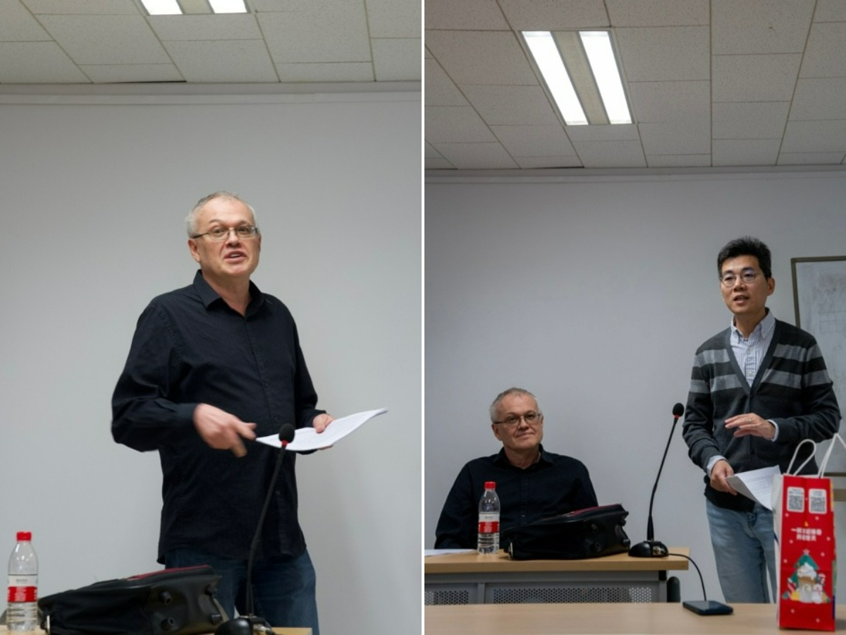 11月3日,Bošković教授在外国语学院新楼301做了第三场报告,主题为“分配性并列句和疑问词并列句”。本场报告主要讨论分配性并列句的句法结构及其启示。Bošković教授指出,从跨语言的角度来看,类似的分配性并列结构移位现象广泛存在,如塞尔维亚-克罗地亚语中的形容词移位、日语中的名词移位等。除此之外,Bošković教授还对疑问词并列句进行了讨论。有趣的是,一个语言是否允许疑问词并列似乎与该语言中疑问词的形态特征有关。Bošković教授的讲解引人入胜,在答疑环节大家对汉语的相关情况也展开热烈讨论,在座师生都获益良多。