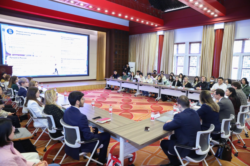 随后,校长系统介绍俄罗斯国立高等经济大学的办学特色、学科优势及国际化发展战略,热情邀请中国学生赴该校深造,参与线上线下课程学习,亲身体验俄罗斯文化,切实融入中俄文化交流实践。