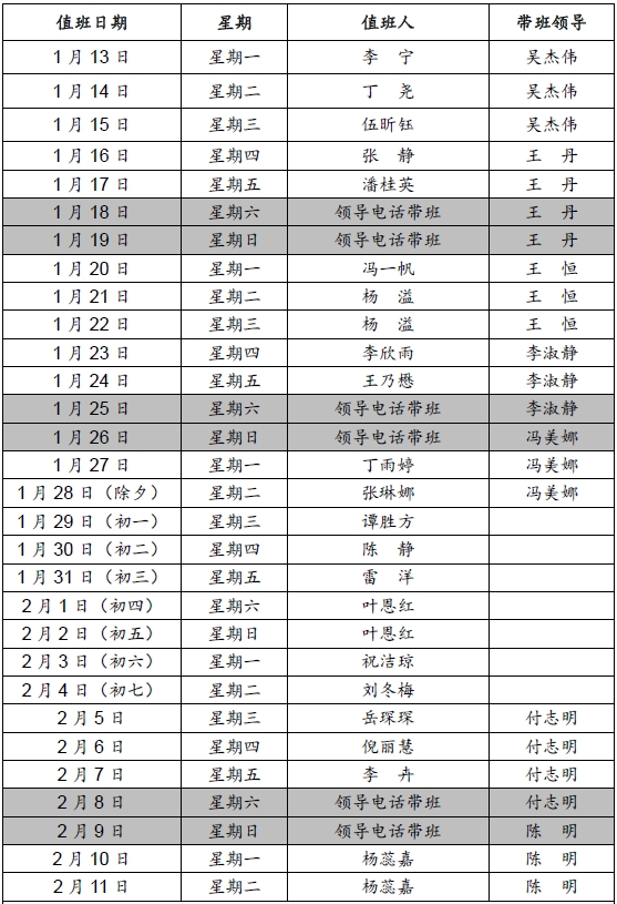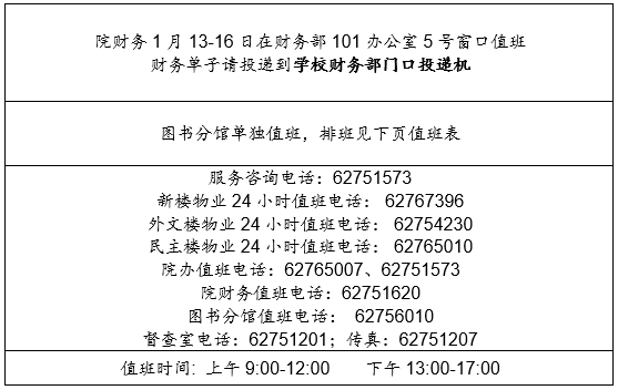 2025年寒假外国语学院带值班表