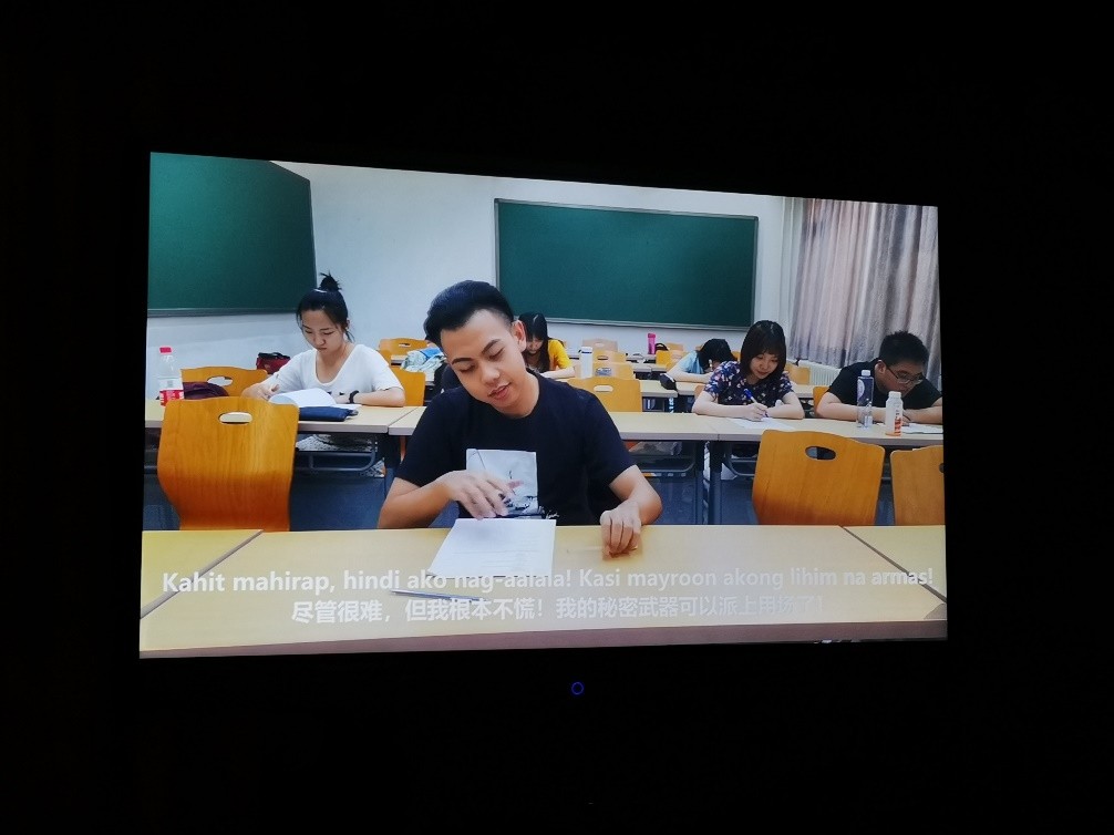 活动的第一个环节是学生微电影首映式。此次放映的微电影名为《Si Matalino at Si Monitor(聪明人和班长)》,由北京大学菲律宾语专业2017级开云官方在线入口于2019年暑假拍摄,全程采用菲律宾语配音,并配有中文字幕,这是该作品首次面向观众放映。电影中的故事改编自菲律宾民间故事《Si Pusong at ang lumuluksong palaka》,讲述了聪明人通过智慧欺骗贪婪班长并最终取代其位置的故事,表达了对贪婪统治者的抨击和对机智勇敢人物的颂扬。