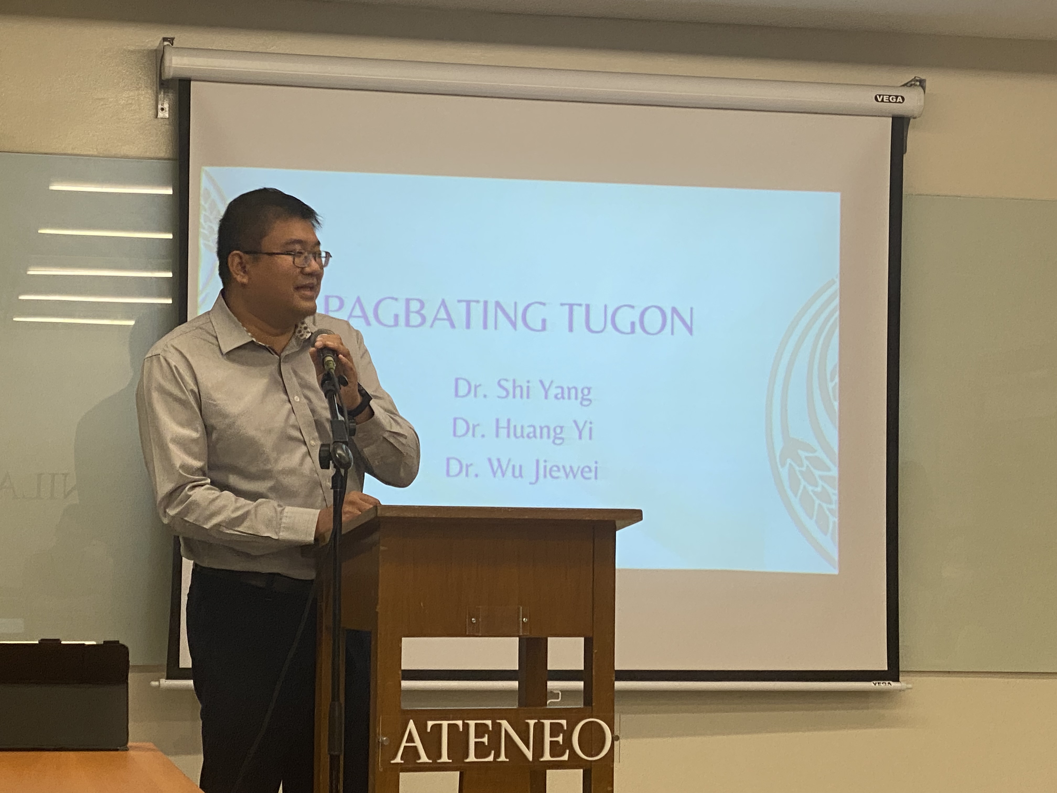 北京大学的三位教师分享了三十余年来两校交流合作的深厚历史,在感谢雅典耀大学协助北京大学进行菲律宾学科的专业建设的同时,也表达了对两校未来进一步深入合作的期望,特别是以菲律宾语专业为沟通的桥梁,推动两校之间的合作长期延续优化并不断发展提升。徐艺浈同学作为学生代表分享了一次特别的学习经历和宝贵记忆,并代表所有项目参与者表达了对两校老师的感激之情。