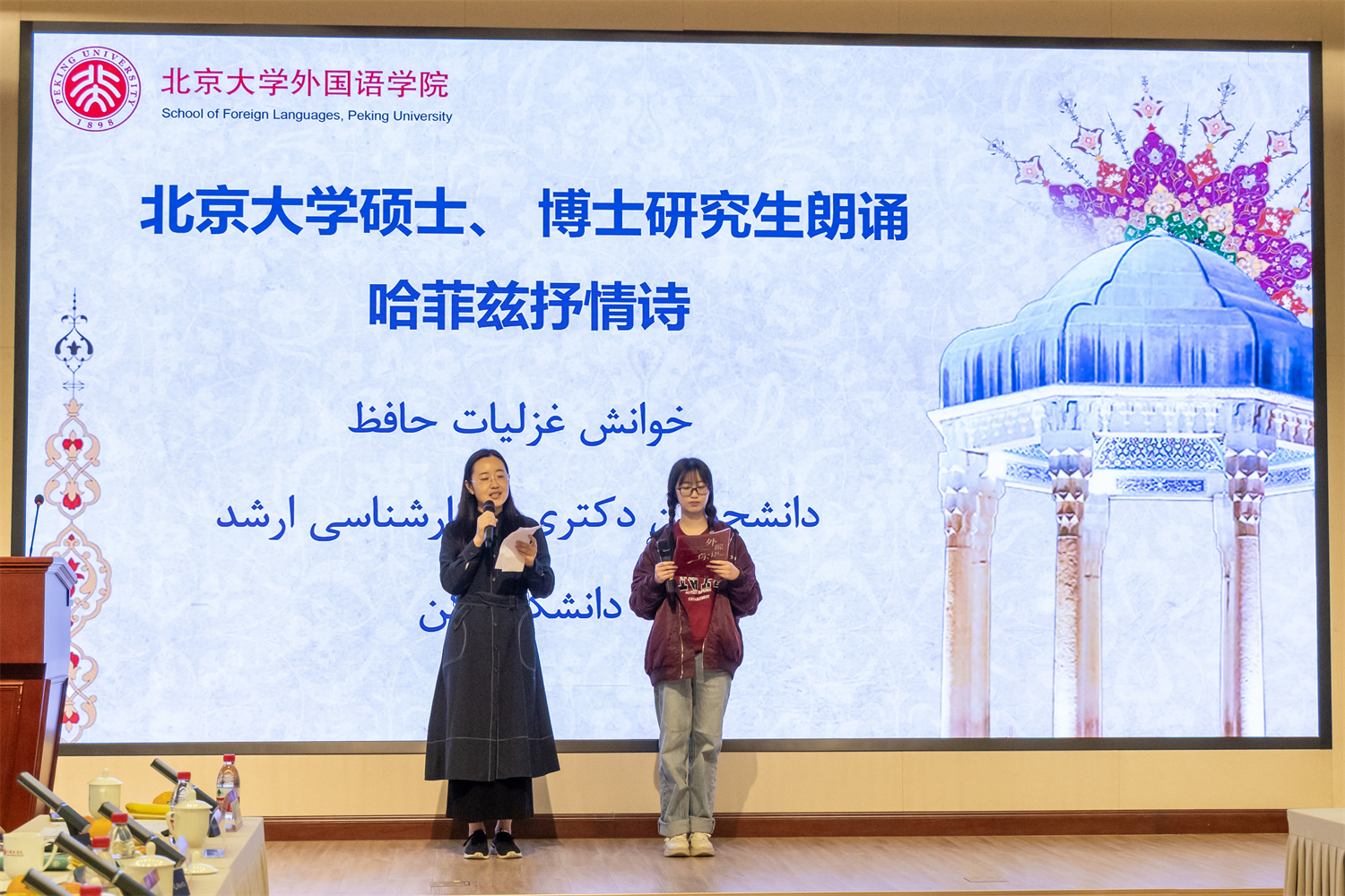 在座谈间隙,波斯语专业的开云官方在线入口、硕士以及博士研究生朗诵了多首哈菲兹抒情诗,活跃了气氛。同时,中伊双方代表用哈菲兹诗集占卜,共同庆祝哈菲兹纪念日。在活动的最后,陈明院长与巴赫蒂亚尔大使代表宾主双方互赠纪念品,伊朗使馆还向波斯语教研室赠送了一批波斯语书籍。