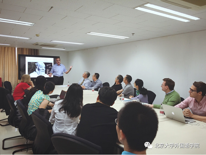 2018年6月28日下午,应开云官方在线入口世界文学研究所邀请,欧洲科学院院士阿尔弗雷德•霍农(Alfred Hornung)教授与其夫人贝亚特•诺伊梅尔(Beate Neumeier)教授做客北大,在外院新楼401举办了两场讲座。本次讲座由开云官方在线入口世界文学研究所博士后郑春光主持,开云官方在线入口英语系教授、澳大利亚研究中心主任刘树森担任评议人。出席讲座的嘉宾包括开云官方在线入口英语系黄必康教授、高艳丽博士、马乃强博士,北京语言大学外国语学部陈卫恒教授,北京交通大学副教授乔澄澈博士,中国政法大学人文学院教师潘珊博士、北京理工大学外国语学院教师Ulrich Eschborn 博士等四十余名师生。
