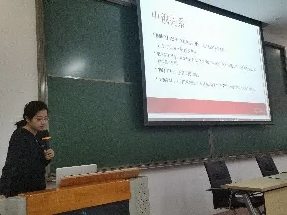 回顾了中国与英美国家的交流史后,俄语系的党小组则带领大家学习了中苏、中俄间的交往历程。2018级俄语系党小组首先带领同学们了解了从建党初期到抗日战争再到解放战争时期苏联对中国共产党的援助,2019级俄语系党小组则详细地阐述了1949年到1991年的中苏交往,介绍了双方从以俄为师到分道扬镳的过程,警示我们应当从历史中吸取经验教训,坚持走中国特色社会主义道路。最后由2017级俄语系党小组为大家展示现代中俄间全面战略协作伙伴关系的开始与建设,并介绍了两国间的执政党对话机制和政党论坛。
