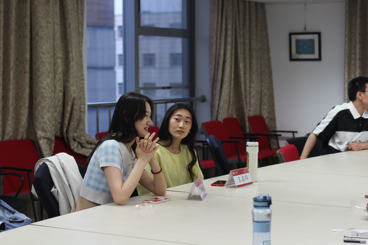 在活动中,同学们除了根据自身疑惑主动提问、从事先准备好的问题盲盒中抽取共性问题进行交流,还与学长学姐分享自己的日常学习生活趣事。另外,借本次活动的机会,一些阔别校园已久的德语系故交旧友也再次于外院新楼这个曾经无比熟悉的地方相见。活动现场氛围热烈,欢声笑语不断。