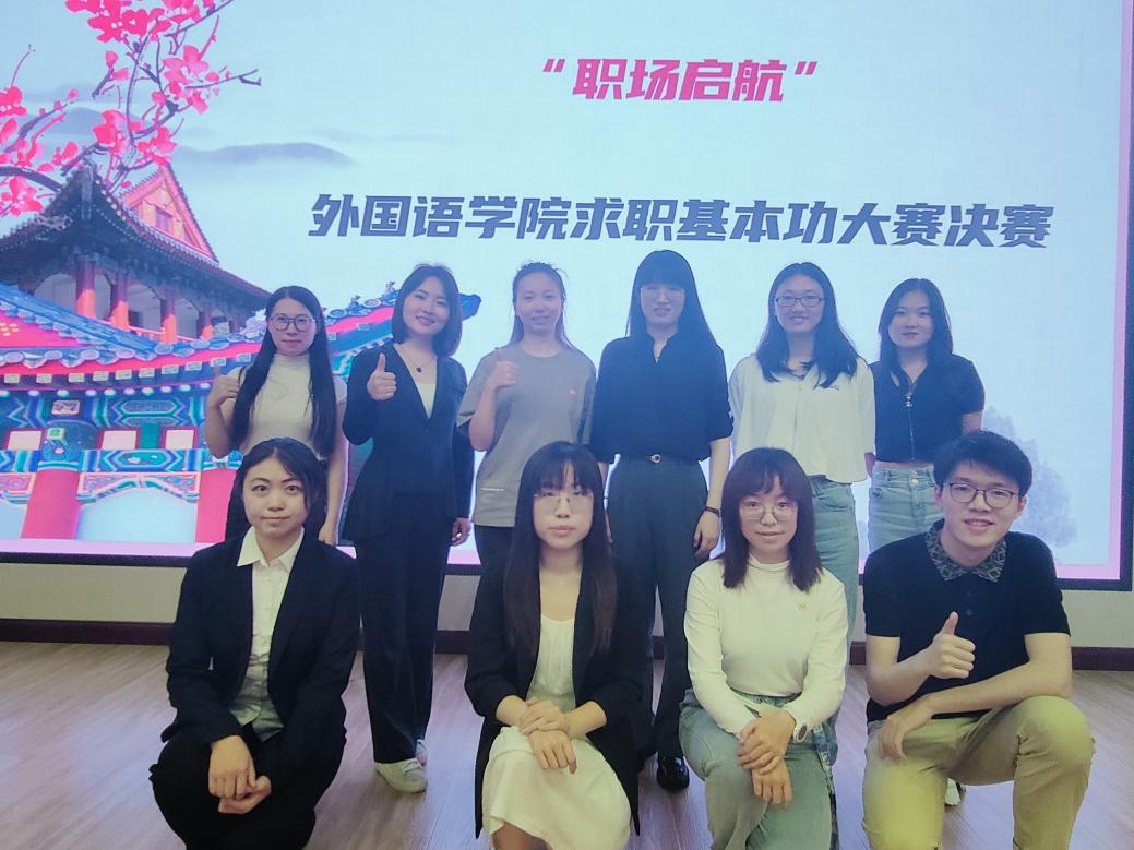 5月19日下午,外国语学院求职基本功大赛决赛在民主楼208会议室举办。中公教育任传慧,高途集团上官丽丽、刘炎抵达现场为参赛选手进行面试、打分、点评以及颁奖,高途集团宋雪薇,外国语学院党委副书记王恒、辅导员丁尧、杜姝格出席。