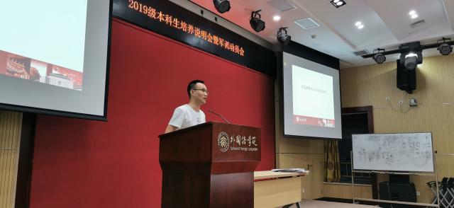 8月19日晚6:30,外国语学院培养说明会暨军训动员会在外院新楼501会议室举行,院党委副书记王恒,教务办公室崔桂红、李宁,军训领队郑楠、彭耕、刘东奇和李佳盈出席活动。活动由院团委书记卢敏主持。