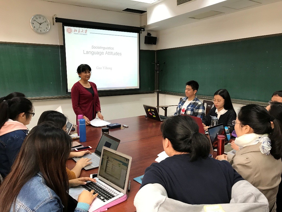 3月29日上午,外国语学院教授、博士生导师,外国语言学及应用语言学研究所所长高一虹在文史楼215举办开放课堂。高一虹在北京大学第二十二届“我爱我师——最受学生爱戴的老师暨‘十佳教师’系列评选活动”中获评“十佳教师”称号,本次课堂开放以“社会语言学”为讲授和探讨主题,吸引了诸多学生和青年教师,亲临现场感受其课堂魅力。