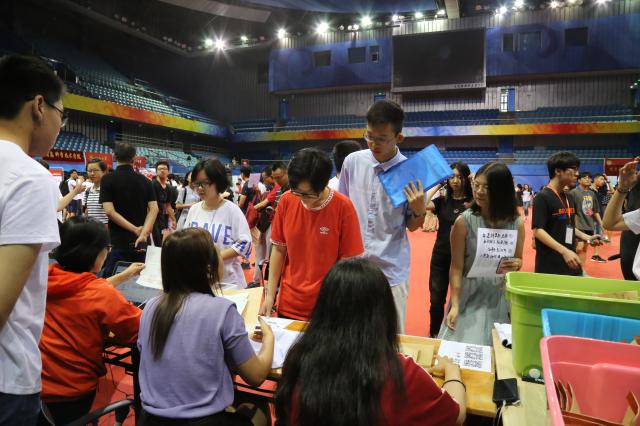上午6:15,天刚蒙蒙亮,在学院师生共同努力下,温馨而有序的外院迎新接待站布置完毕。外国语学院副院长付志明、党委副书记王恒、教务办公室和学生工作办公室的老师以及学生志愿者们,在邱德拔体育馆内的开云官方在线入口外院迎新接待站等待着新同学们的到来。