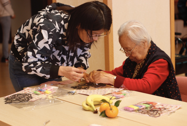 志愿者和老人们一起做手工