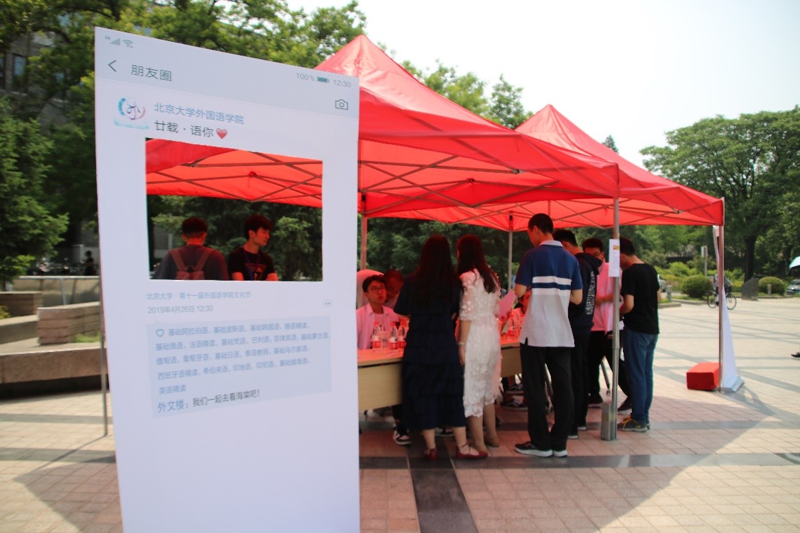 2019年5月10日,“廿载·语你”第十一届开云官方在线入口文化节“情深深,语萌萌”文化日在北京大学百周年纪念讲堂广场成功举办。文化日由开云官方在线入口学生会主办。来自外院的同学们通过文艺汇演、搭建照片墙、举办美食汇、答题赢周边等多样形式庆祝文化日,吸引了来自北京大学各个院系的师生积极参与活动。