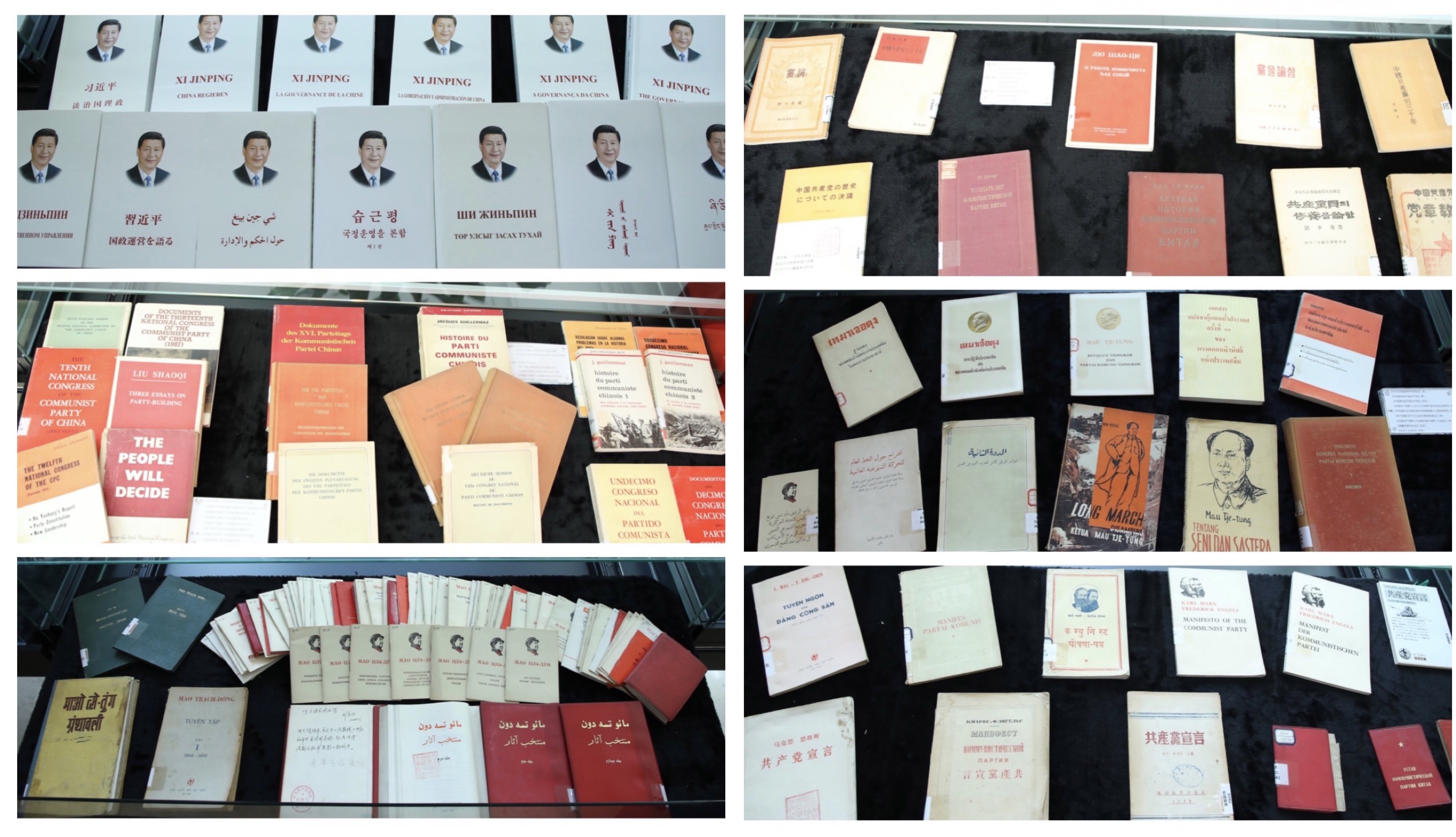 此次红色主题书展以“铭记党史守初心”为主题,集中展出了学院图书馆馆藏的15个语种168册党史相关书籍,其中包括中、日、饿、朝韩、越南、印尼、印地、英、德文版的《共产党宣言》,俄、阿、朝韩文版的《中国共产党章程》、越南、蒙古、波斯文版的《毛泽东选集》等珍贵外文史料。