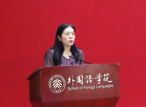李昀介绍了第三指导组的工作情况,进一步强调了开展“不忘初心、牢记使命”主题教育工作的重要意义,详细介绍了本次工作的四大特点和九个主题工作,并对工作的具体开展提出了指导意见。同时她也表示外国语学院有非常多元的语言背景和开放的国际视野,希望学院充分发挥学科优势、做好舆论宣传工作,充分发挥学生党支部的活力和创造力,加强与教职工党支部的联动效应,积极上报在主题教育中形成的特色成果,在全校范围内树立先进典型。