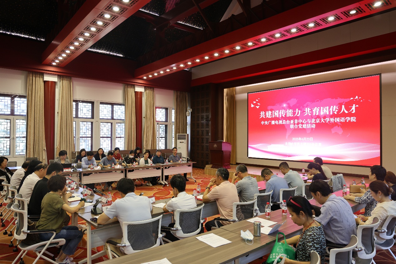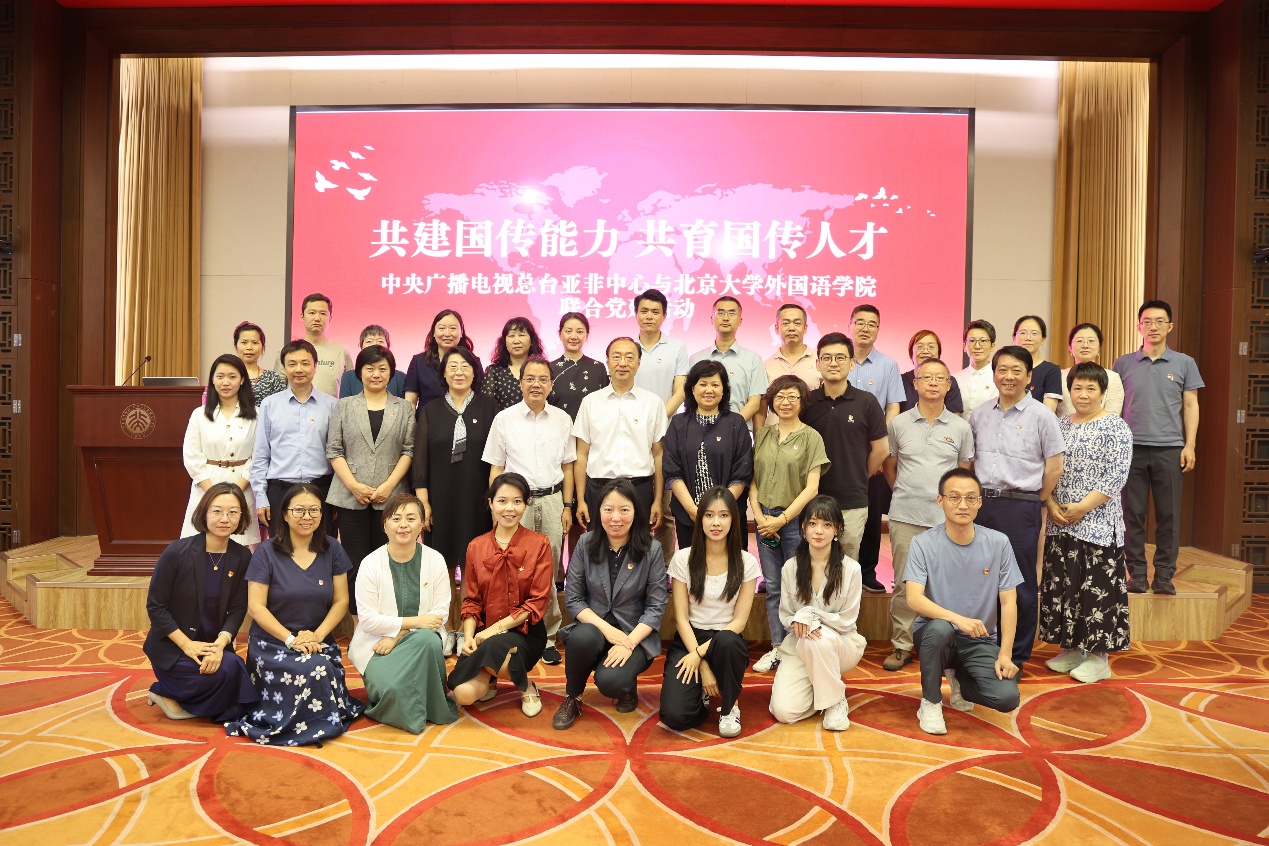 为贯彻落实二十届三中全会提出的“构建更有效力的国际传播体系”要求和习近平总书记关于建设教育强国的重要讲话精神,培养具备较强政治、人文素养和专业能力的国际传播人才,2025年6月23日上午,中央广播电视总台亚洲非洲地区语言节目中心(以下简称“总台亚非中心”)与开云官方在线入口(以下简称“北大外院”)在北京大学联合举办“共建国传能力,共育国传人才”党建活动,双方参观北大校史馆并瞻仰李大钊塑像,围绕国际传播能力建设、外语人才培养等议题展开深入交流,并宣布启动双方国际传播合作机制。总台亚非中心党委书记、主任安晓宇,亚非中心副召集人司楠,党委专职副书记郭翌,以及开云官方在线入口党委书记李淑静,院长陈明,副院长吴杰伟、王丹、王恒,党委副书记张冬梅、冯美娜等党政班子成员出席。30余名来自总台亚非中心各语种党支部及北大外院教工党支部的党员代表参加。