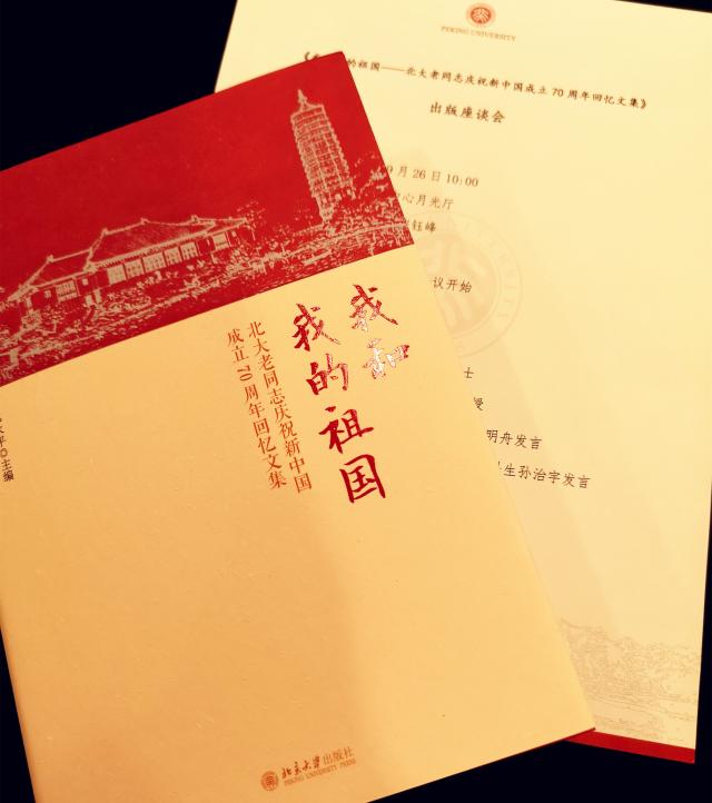2019年9月26日,为庆祝新中国成立70周年,弘扬主旋律,凝聚正能量,《我和我的祖国——北大老同志庆祝新中国成立70周年回忆文集》出版座谈会在英杰交流中心月光厅举办,外国语学院胡壮麟教授、赵振江教授、学院副院长张冬梅受邀出席了座谈会。