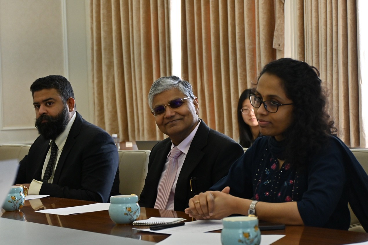 随后,罗国栋前往外文楼206会议室与北大外国语学院师生深入交流。本次座谈会由印地语教研室主任王靖主持,外国语学院院长、印度研究中心主任陈明、南亚学系系主任萨尔吉、南亚学系副系主任姜永红、外国语学院国别和区域研究专业助理教授、印度研究中心主任助理张忞煜出席。