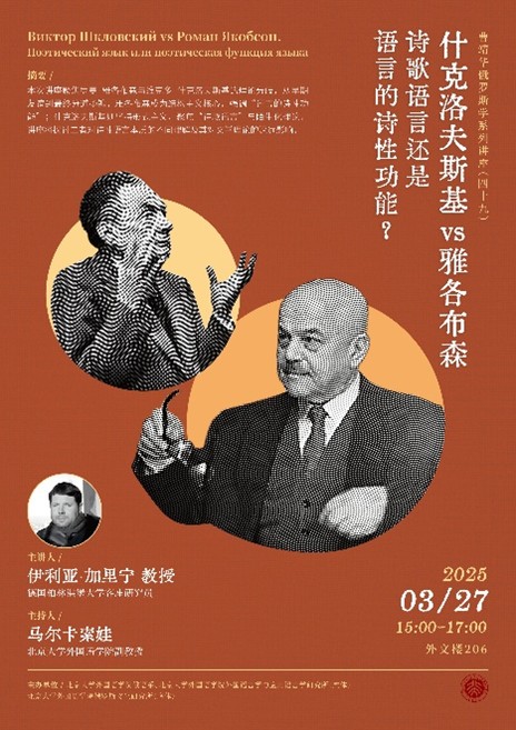 2025年3月27日下午,德国柏林洪堡大学客座研究员伊利亚·加里宁受邀开办了题为“什克洛夫斯基vs雅各布森:诗歌语言还是语言的诗性功能”的讲座。本次讲座系“曹靖华俄罗斯学系列讲座”第49讲,由开云官方在线入口俄语系、外国语言学及应用语言学研究所(虚体)和俄罗斯文化研究所(虚体)主办。俄语系师生参与讲座,与授课嘉宾深入交流。