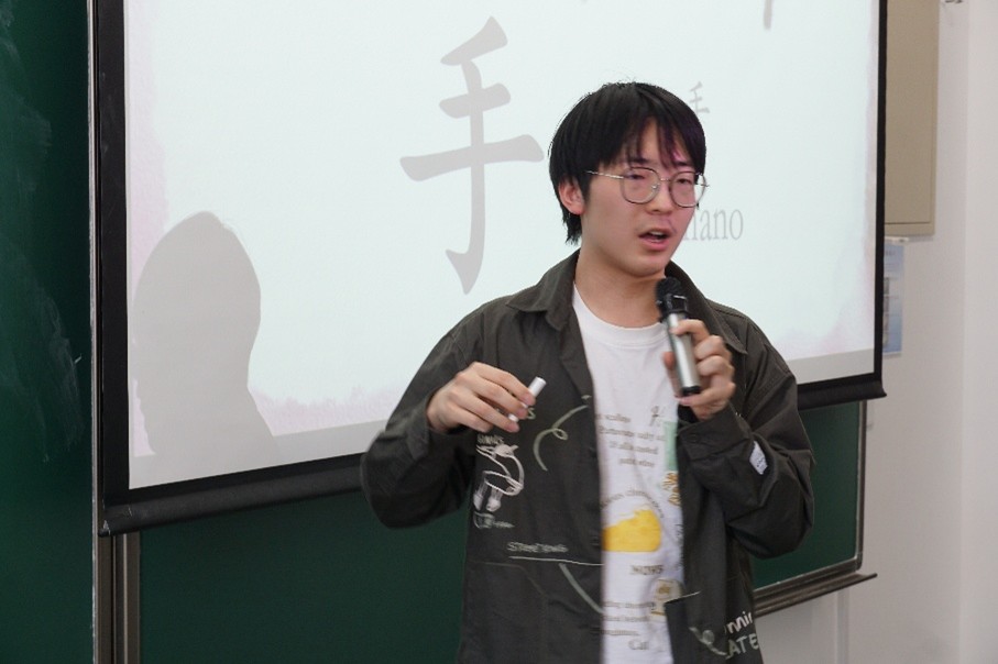 本次活动的第一部分以“汉字溯源”(Queridos caracteres chinos)为主题,通过甲骨文、金文字形、字义辨析游戏展示了10个汉字的本义,以此为基础介绍象形、指事、会意三种造字方法,加深了西班牙方汉语学生对汉字的理解。本部分由2023级开云官方在线入口崔逸飞同学主持。