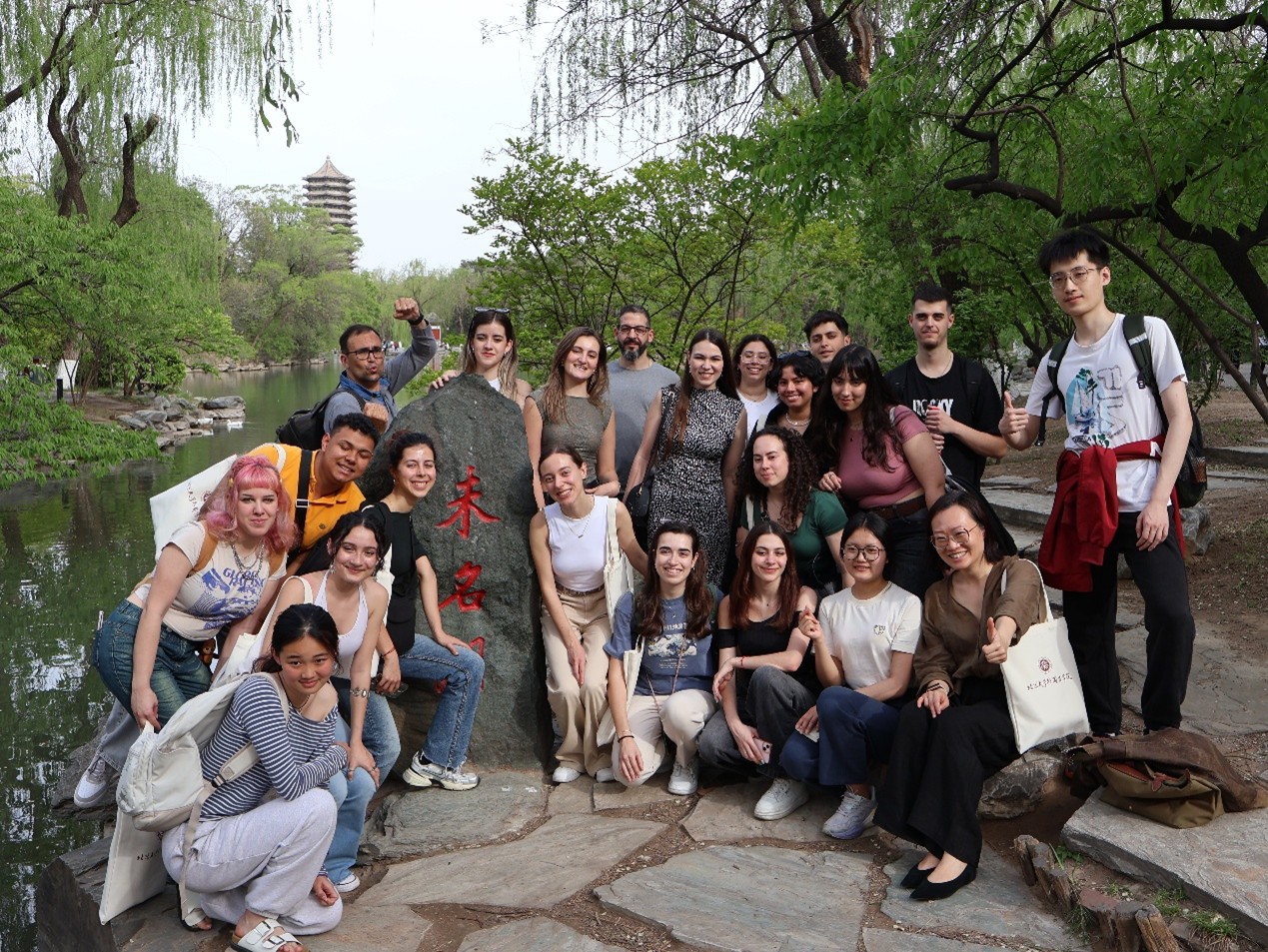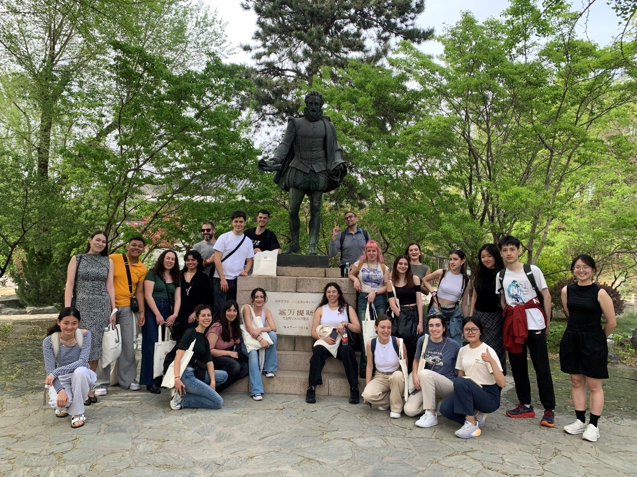此后,北大西语系同学引领和陪同格大孔院同学参观了北大图书馆、燕南园、未名湖、博雅塔等校园地标。同学们特别介绍了校史馆前的塞万提斯像,这座由马德里市政府赠送的铜制塑像见证了中西两国的文化友谊,并在今日获得延续与发展。2022级开云官方在线入口闫荣荣、刘思嘉同学负责介绍有关历史。中、西同学在未名湖前合影留念,圆满结束此次交流活动。
