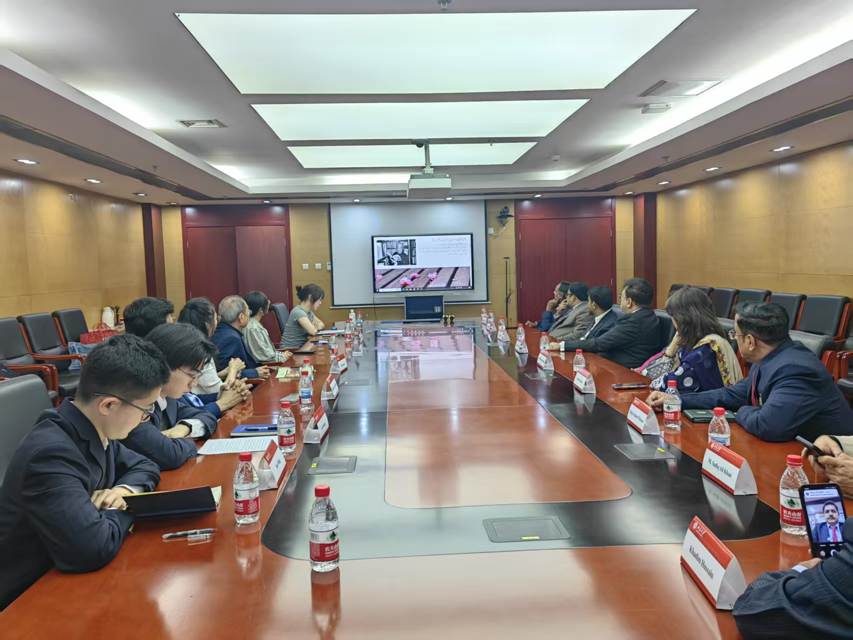 唐孟生教授结合自身在卡拉奇的工作与访问经历,与来访学者深入探讨了在巴国内“巴基斯坦研究”的历史及卡拉奇地区巴基斯坦研究中心的运行情况。卡拉奇大学巴基斯坦研中心主任Erum Muzaffar、信德大学巴基斯坦研中心主任Shuja Ahmed详细介绍了巴基斯坦研究及相关机构的历史发展与现状。领队Ali Shaikh顾问回顾了两国友谊发展的三个阶段,强调当下中巴全天候战略合作伙伴关系及高质量建设“中巴经济走廊”的战略意义。来访学者表示,中巴友谊历经风雨,互信互助,面对发展合作中的困难,需不断加深专业领域的交流与合作,携手共克艰难。代表团向乌尔都语专业师生发出诚挚邀请,望进一步深化两国教育合作,发挥青年力量推动民间交往。