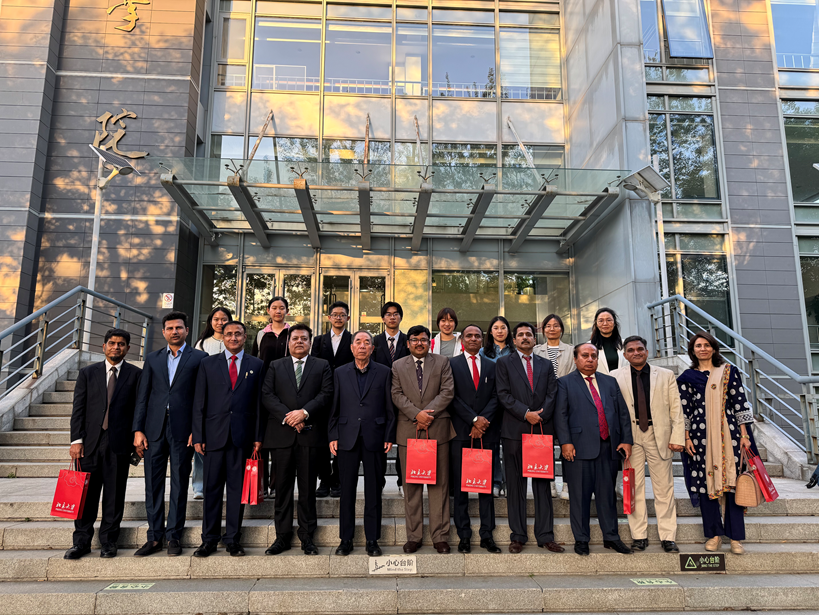 2025年4月22日下午,北京大学南亚学系乌尔都语专业及北京大学巴基斯坦研究中心师生与巴基斯坦高教访问团一行9人在外院新楼B134会议室座谈交流。巴基斯坦访问团由来自信德省卡拉奇地区的大学校长、学院院长和研究中心主任组成,由信德省政府顾问、信德伊斯兰大学前校长Muhammad Ali Shaikh担任领队。北京大学巴基斯坦研究中心创始主任唐孟生教授、南亚学系副主任及巴基斯坦研究中心主任张嘉妹副教授、乌尔都语教研室主任张亚冰博士、巴基斯坦籍教师Muhammad Arshad Bhatti博士,以及乌尔都语专业学生代表参与了此次座谈交流。在座谈中,双方围绕中巴教育合作、学术交流及两国友好关系展开深入对话。