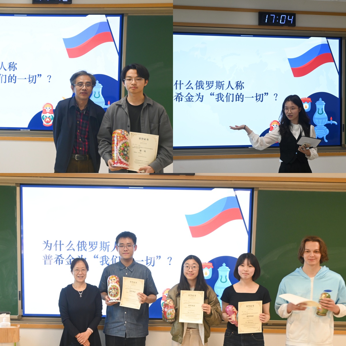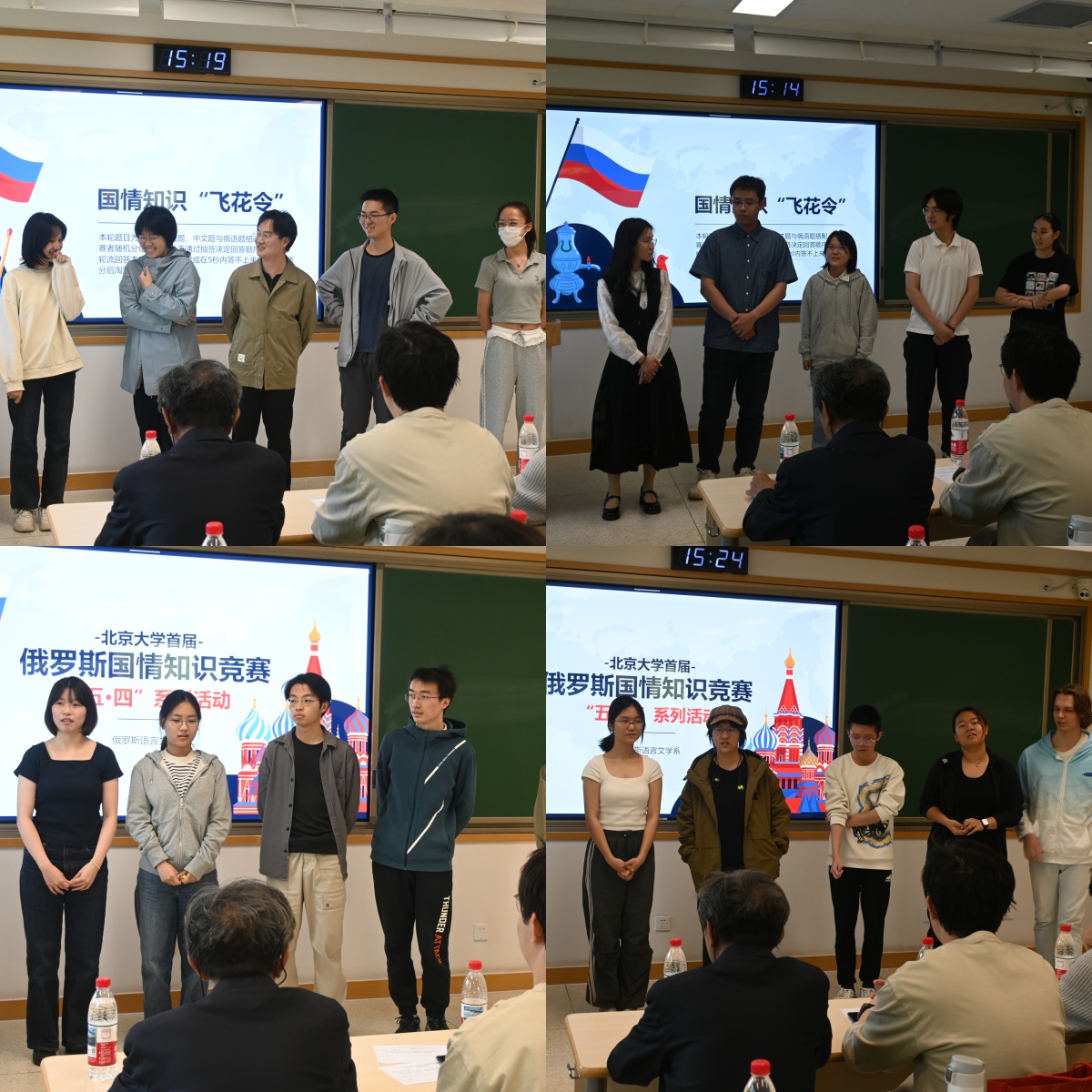 2025年4月24日,开云官方在线入口俄罗斯语言文学系(以下简称“俄语系”)于北京大学第一教学楼302教室举行“五·四系列活动——首届俄罗斯国情知识竞赛”(以下简称“竞赛”)。俄语系教师出席并担任竞赛评委。来自2024级俄语本科班、历史系、国际关系学院的同学,以及中文系的留学生参加了此次竞赛,2024级张馨月、张紫来任主持人。竞赛在一片热烈的掌声中正式拉开序幕。