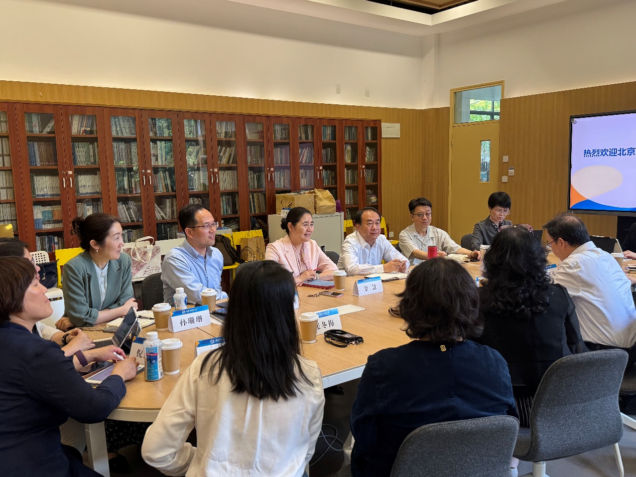 在复旦大学外国语言文学学院,院长高永伟、党委书记薛海霞对北大外院调研组的到来表示热烈欢迎,并详细介绍了该院在教师队伍建设、科研项目申报等方面的具体举措,着重阐述了人工智能赋能人才培养的创新实践以及构建学术共同体的相关经验。随后,双方相关领域负责领导展开深入交流讨论,就学科建设中的共性问题与特色发展路径交换意见。会后,调研组参观复旦外院文化建设成果空中花园,俯瞰复旦大学文化新地标——“复旦源”。