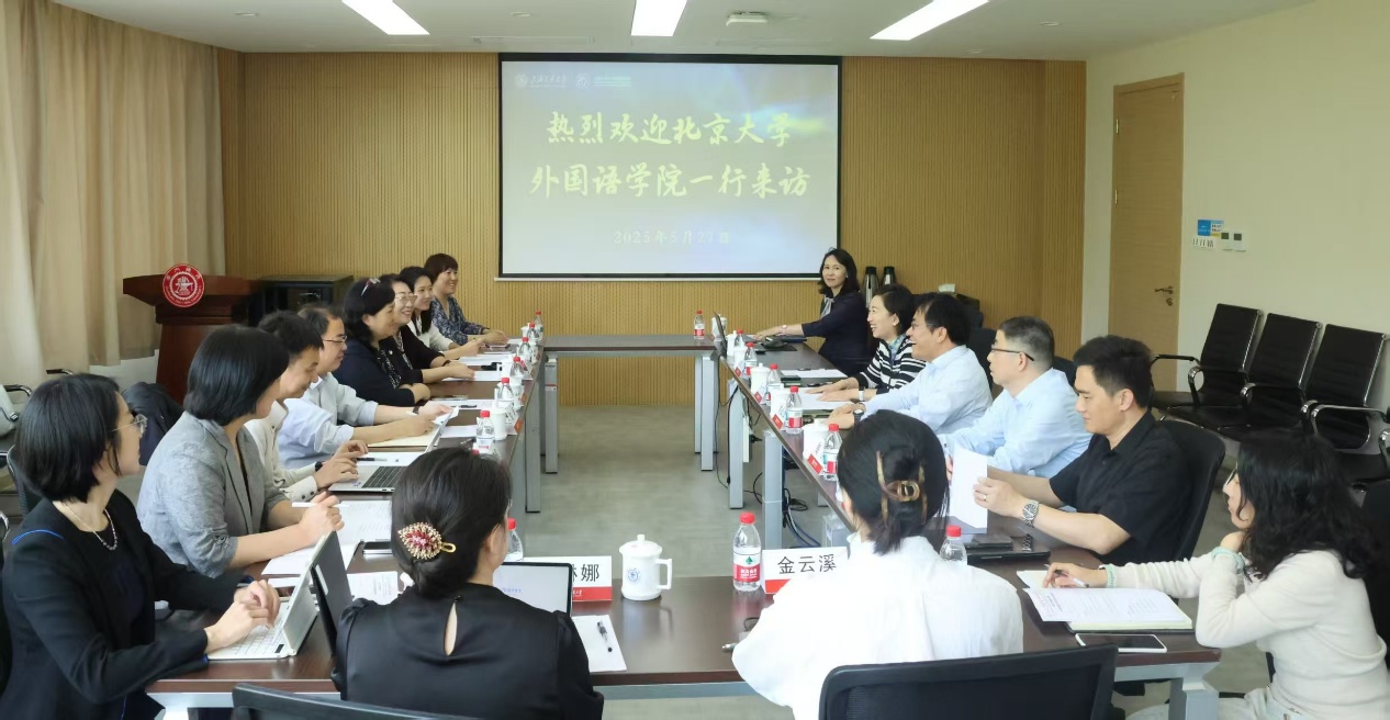 在上海交通大学外国语学院,院长尚必武、党委书记朱一凡介绍学院的整体情况,并分享学院在教师队伍建设、研究生人才培养以及人工智能赋能传统学科发展等方面的先进经验。双方针对当前外语学科面临的痛点、难点问题进行深入交流,共同探讨应对策略与发展方向。