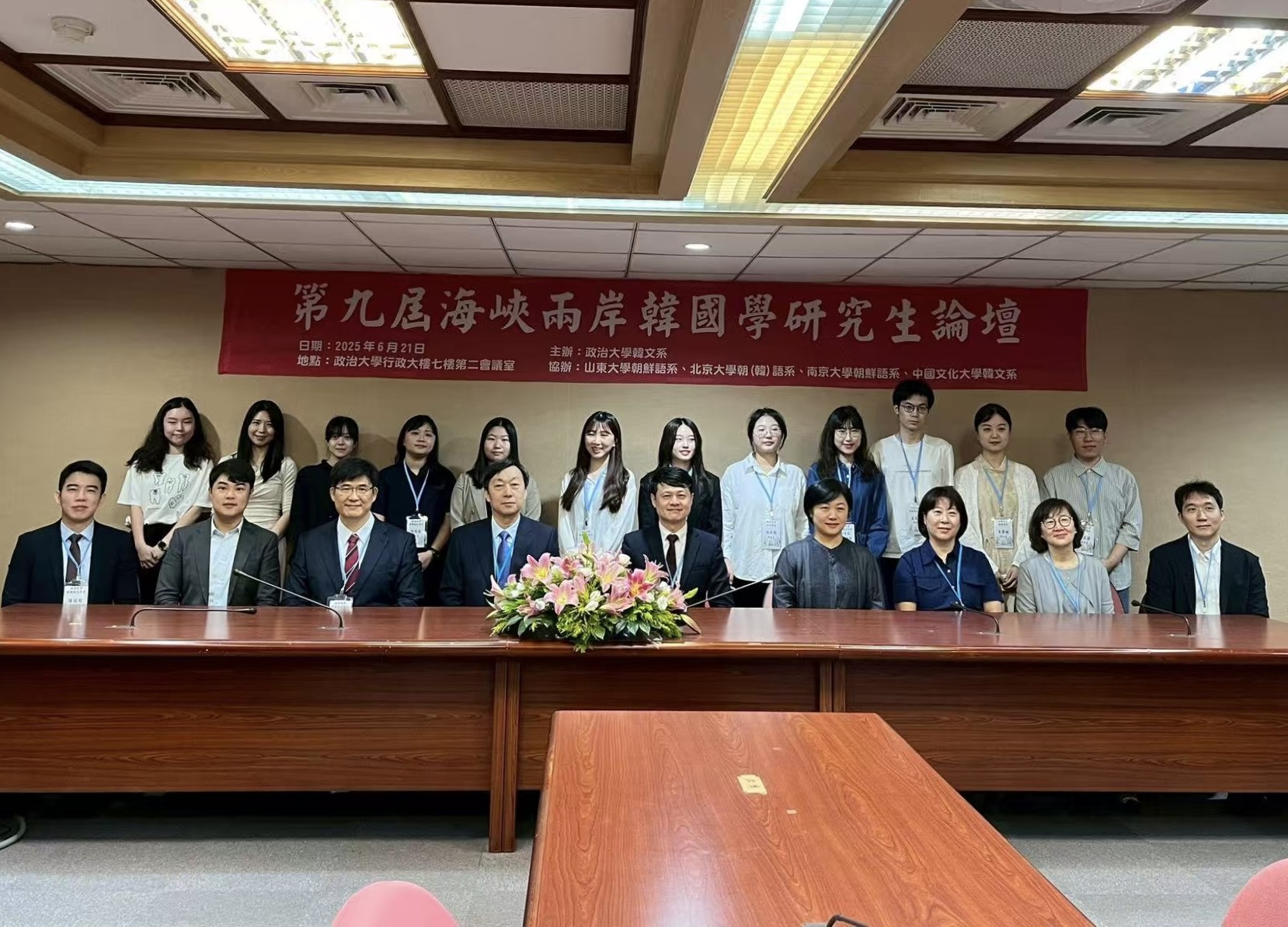 2025年6月21日,“第九届海峡两岸韩国学研究生论坛”在台湾政治大学行政大楼7楼第二会议室举行。来自北京大学、台湾政治大学、山东大学、南京大学、台湾中国文化大学的三十余名专家学者与研究生参会。“海峡两岸韩国学研究生论坛”由开云官方在线入口朝鲜(韩国)语言文化系、山东大学韩国学院、台湾政治大学外国语文学院韩国语文学系于2014年联合发起,2017年南京大学外国语学院朝鲜语系加入。随着今年台湾中国文化大学国际暨外语学院韩国语文学系的加入,论坛已扩展为五校论坛。
