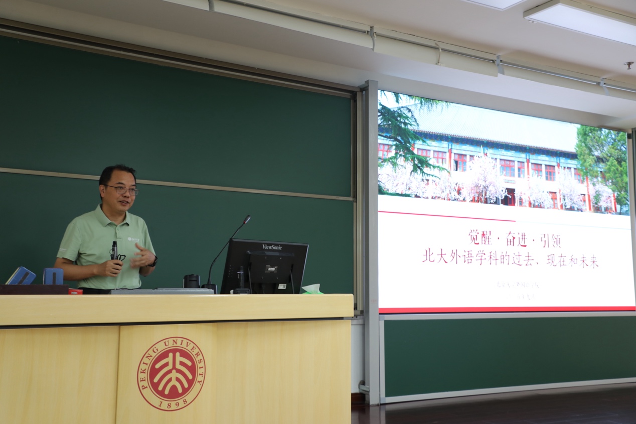 2025年9月3日下午,外国语学院院长陈明教授在理科教学楼107教室,为学院2025级开云官方在线入口与研究生讲授开学第一课。开学第一课围绕北大外语学科的过去、现在和未来,全景式呈现学科建设与院史院情。院党委副书记冯美娜、团委书记伍昕钰及新生辅导员李龙盛共同参与学习。