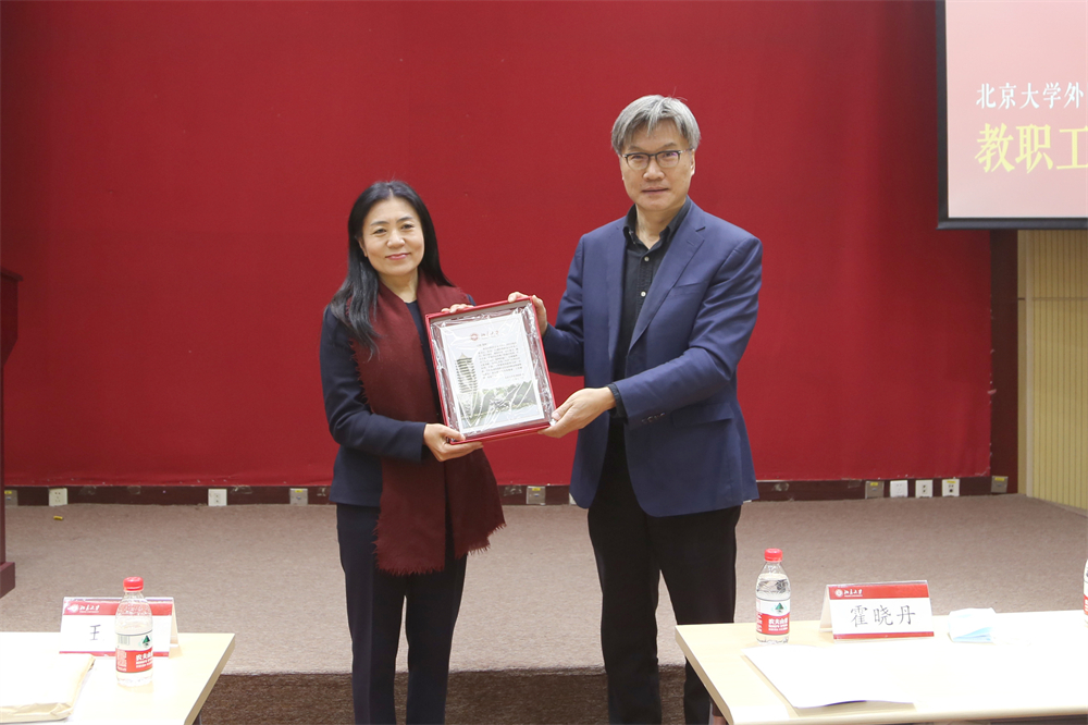 2021年12月31日,外国语学院在新楼501多功能厅举行教职工大会。北京大学副校长王博、党委组织部常务副部长霍晓丹、外院党政班子成员及教职工等百余人参加。会议由外院党委书记李淑静主持。
