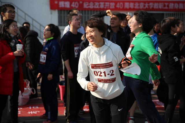 为纪念改革开放四十周年,外国语学院教师纳海、林琳、于施洋、王爱京代表我院参加了北京大学工会组织的“’辉煌40’ 2018北京大学教职工健身跑暨冬季健身活动月启动仪式”的活动。她们于2018年11月30日中午在五四操场上合力长跑40圈。在此次活动中,我院教师充分发挥了奋勇拼搏,勇往直前的精神,轻松完成了16000米的长距离。