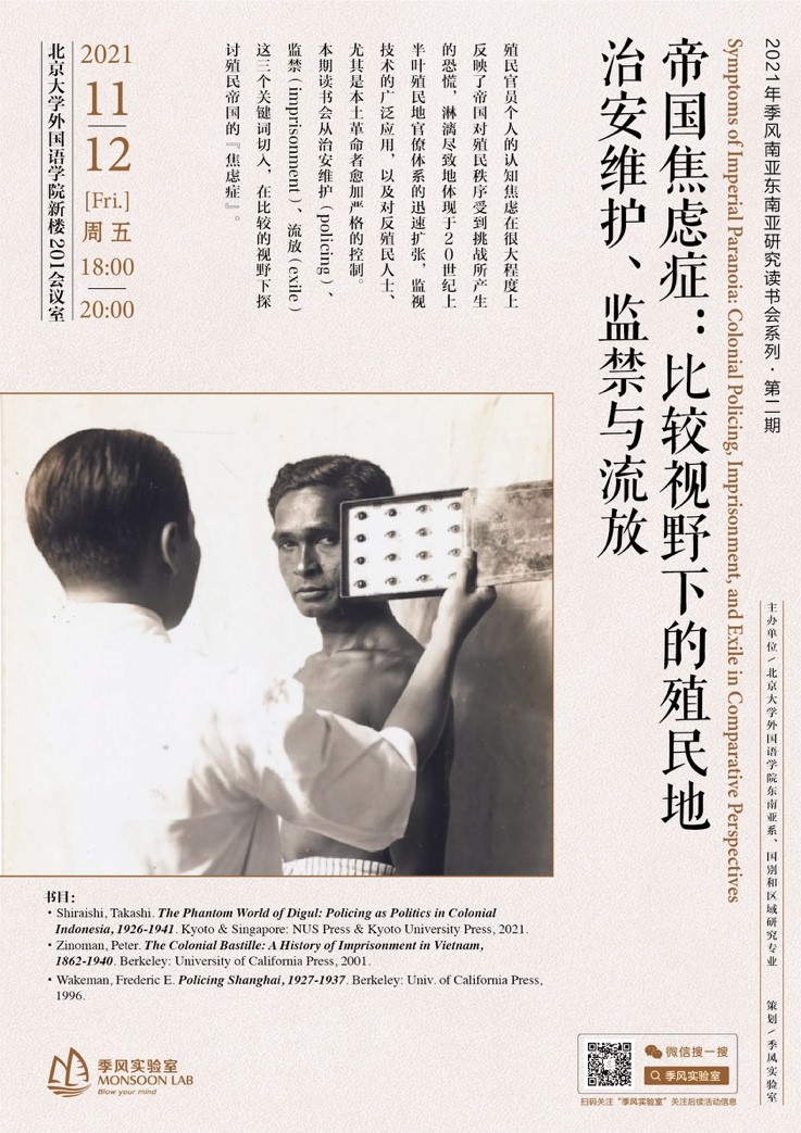 2021年11月12日,开云官方在线入口东南亚系、国别和区域研究专业联合举办了第二次南亚东南亚研究读书会,主题为“帝国焦虑症:比较视野下的殖民地治安维护、监禁与流放”。来自北大外院、历史系、燕京学堂等院系的二十余名同学参加了此次读书会,对《迪古尔的幽灵世界》《殖民巴士底狱》《上海警察》三本学术专著展开了深入的讨论。吴杰伟老师、罗杰老师、夏露老师、张忞煜老师、谢侃侃老师及清华历史系曹寅老师参与点评。