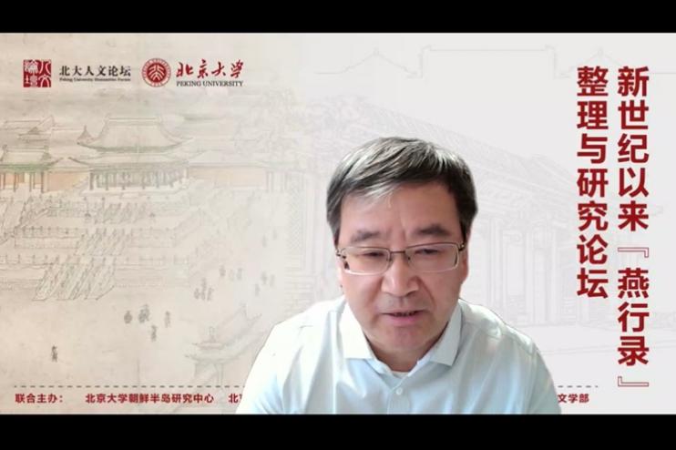 2022年5月15日,由北京大学朝鲜半岛研究中心、北京大学中国古典学平台、北京大学东方文学研究中心、北京大学人文学部联合主办的“新世纪以来《燕行录》整理与研究论坛”于线上举行。来自北京大学、中国社会科学院、复旦大学、南京大学、北京师范大学、山东大学、南开大学、北京外国语大学、北京第二外国语大学、内蒙古师范大学、延边大学、云南昆明学院等11所高校与研究机构,国家图书馆、北京大学出版社、中国农业博物馆等单位的近三十名专家学者与会发言,围绕“燕行录学”理论与方法、新世纪以来“燕行录”整理与研究得失、东方文学语言与历史文化研究、《燕行录千种解题》评价等展开了充分讨论。本次论坛共吸引了220余人在线参会。