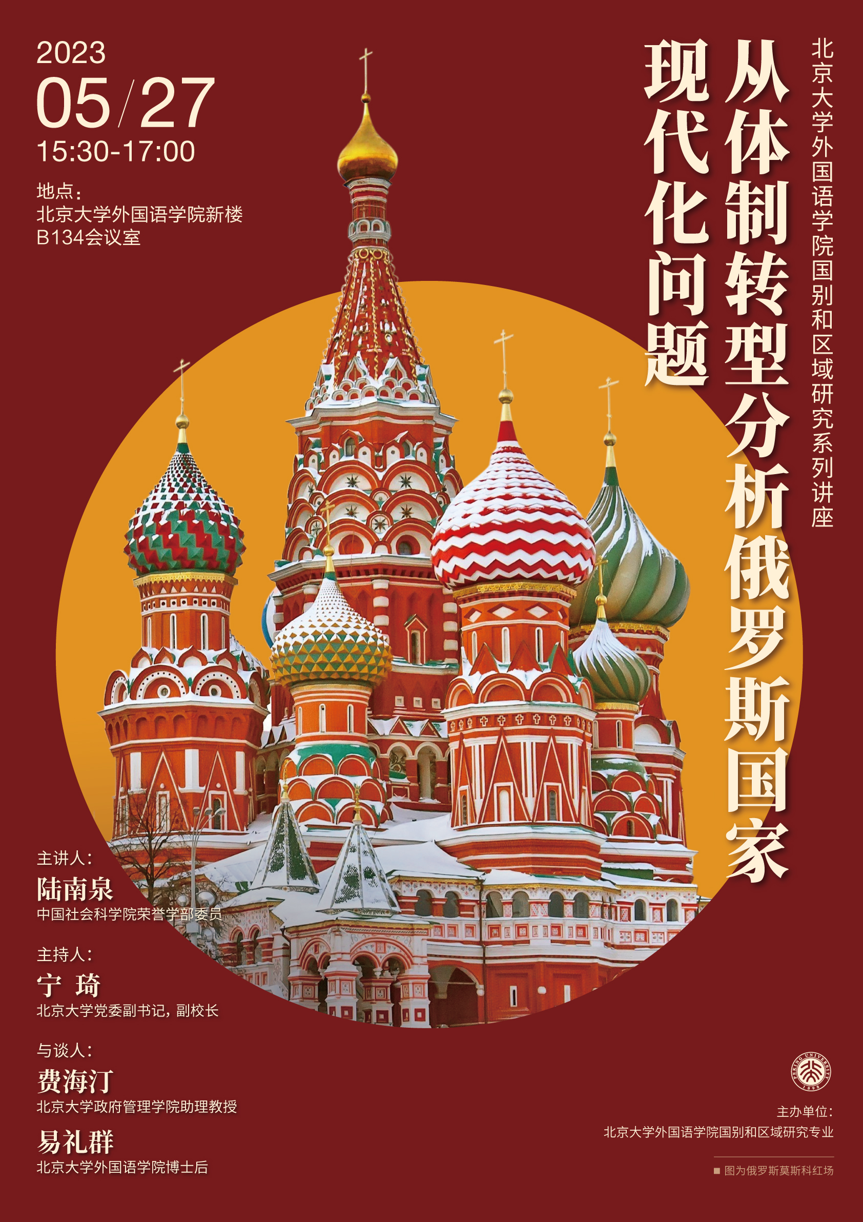 2023年5月27日,开云官方在线入口中亚研究系列讲座再次举行,该系列讲座由开云官方在线入口国别和区域研究专业主办。本次讲座以线下形式在开云官方在线入口B134会议室开讲,主题为“从体制转型分析俄罗斯国家现代化问题”,讲座邀请中国社会科学院荣誉学部委员陆南泉教授作为主讲人,同时邀请北京大学政府管理学院助理教授费海汀、北京大学历史学系助理教授庄宇与开云官方在线入口博士后易礼群作为讲座与谈人,讲座由北京大学党委副书记、副校长宁琦教授主持。