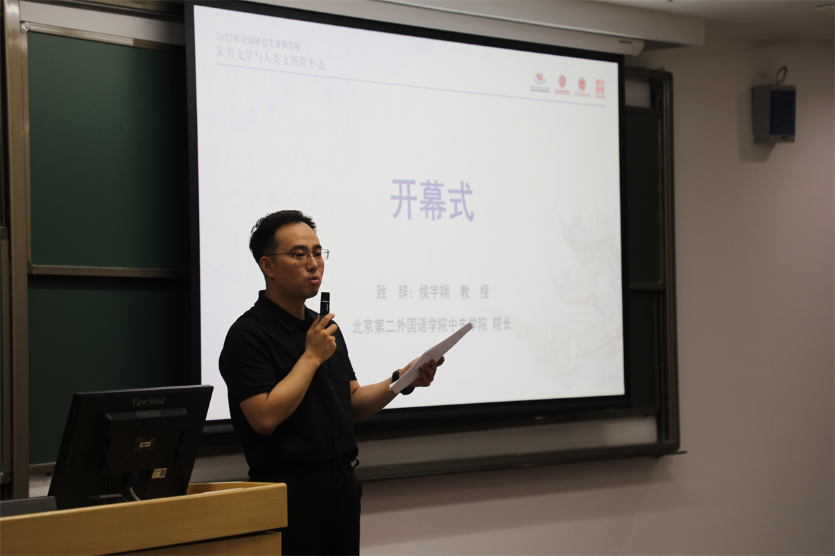 北京第二外国语学院中东学院院长侯宇翔教授对暑期学校的开幕表示祝贺,并对参加暑期学校的学员表示欢迎。他强调北京大学不遗余力地聚集国内外知名学者,共同聚焦最为生动、深刻、具有当代世界性的话题,即“中国式现代化”和“人类文明新形态与东方文学”的历史际遇和现实关照,为学员提供难得的学术给养。最后,侯院长以第二届暑期学校学员的角度寄语本届学员,希望学员们努力制定目标,修改论文,积极参与讨论和互动,珍惜宝贵的学习机会,度过一段美丽而丰富的学术旅程。