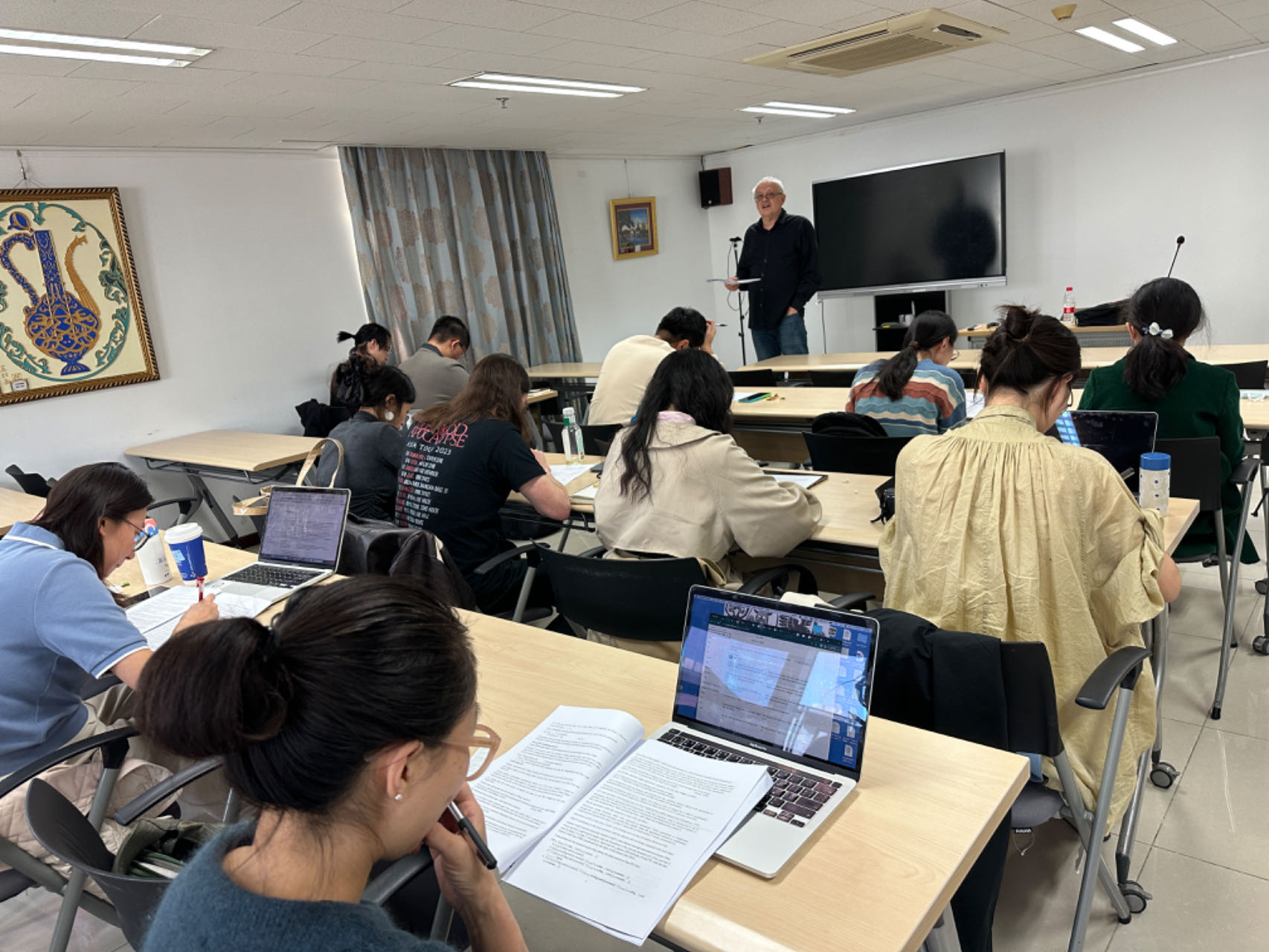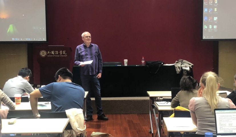 11月2日,Bošković教授外国语学院新楼401举办了第二场报告,这次报告的主题是“生成语言学研究前沿问题与方法论”,采用的是师生互动的研讨模式。本场讨论围绕生成语言学句法理论中备受关注的核心句法问题展开,涉及移位动因、论元与非论元特征等前沿问题,并着重讨论了生成语言学研究如何与类型学研究结合,Bošković教授特别强调了跨语言的研究视角和句法在语言能力中的重要性,引发了大家的热烈讨论,也给在场师生带来很多研究启发。