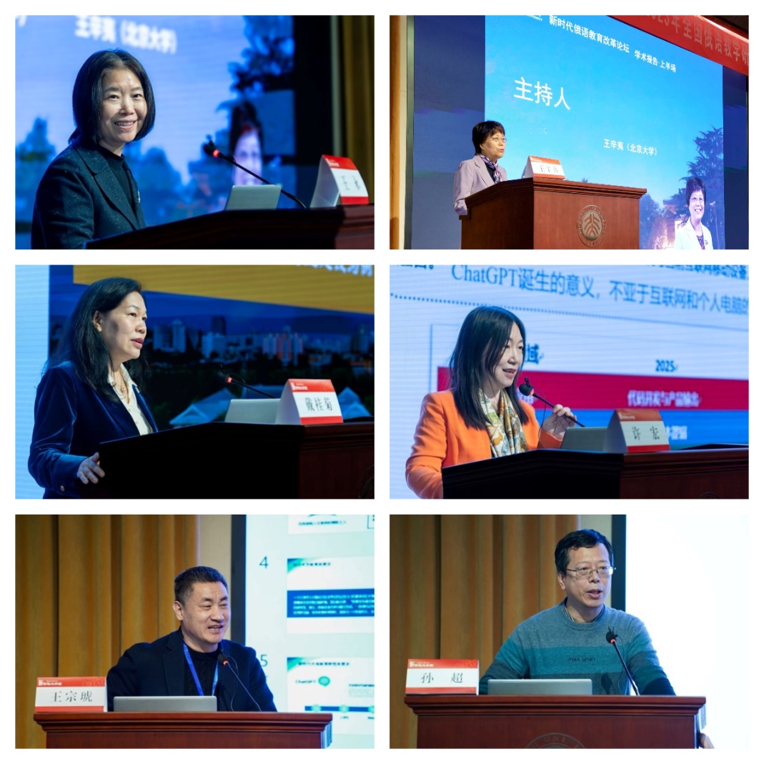 开幕式后,八位专家进行了主旨发言。上半场报告由浙江大学王永教授、北京大学王辛夷教授主持,北京外国语大学俄语学院院长戴桂菊教授报告了本校国家级一流本科专业建设中的联合培养模式,上海外国语大学俄罗斯东欧中亚学院院长许宏教授探讨了数智化时代俄语专业建设的改革与实践可探索的方向,首都师范大学外国语学院院长王宗琥教授论述了以语言与文化融合为导向的外语教育理念与实践,黑龙江大学俄语学院院长孙超教授报告了黑龙江大学俄语学院在新文科背景下对俄语拔尖创新人才培养的探索与实践。