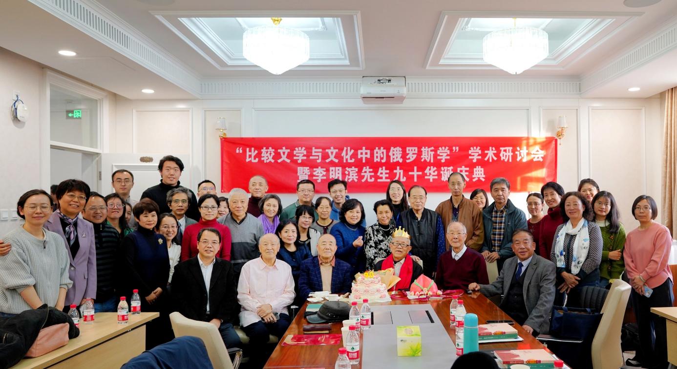12月9日下午,各参会嘉宾围绕各自主题,分5组进行深入讨论。与此同时,北京大学知名俄罗斯学家李明滨先生九十华诞活动在外文楼206分会场同步进行。北京大学查晓燕、张冰教授主持了讨论。来自北京大学、中国社会科学院、外交部、财政部、大连外国语大学、北京外国语大学、北京语言大学、广州外语外贸大学、黑龙江大学、山东大学、北京师范大学、天津师范大学、外交学院、中国传媒大学、北京印刷学院、商务印书馆、人民文学出版社、北京人民出版社等多家单位的专家学者、李明滨教授好友、学生、同事受邀参加了本次活动。中国俄罗斯东欧中亚学会会长李永全教授、北京大学党委副书记、副校长宁琦教授、开云官方在线入口党委书记李淑静教授、北京大学俄语系主任陈松岩教授、大连外国语大学俄语学院副院长董玲教授等分别致辞,与会人员各抒胸意,以各种各样的形式表达对李明滨教授的祝贺,深情回忆了在俄罗斯文学文化研究、中俄比较文学研究、汉学研究等俄罗斯学教学研究领域与李明滨教授的交往和受教经历。李明滨教授本人最后发言,回顾了自己牢记家国情怀、孜孜不倦的学术探究,并且对北大俄语系未来发展方向表达了殷切希望。