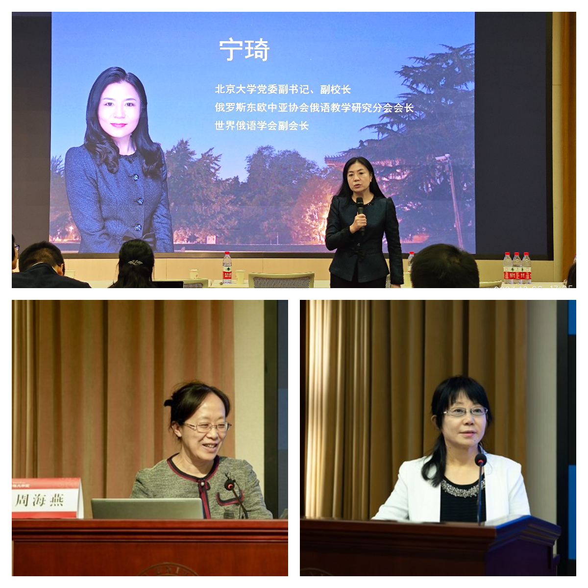 论坛开幕式上,中国俄罗斯东欧中亚学会秘书长王晓泉研究员,北京大学党委副书记、副校长、中国俄罗斯东欧中亚学会俄语教学研究分会会长、世界俄语学会副会长宁琦教授,开云官方在线入口院长陈明教授、北京大学出版社总编辑汲传波教授发表了致辞,俄罗斯驻华使馆一等秘书、教科部驻华代表伊戈尔·波兹尼亚科夫博士宣读了俄罗斯联邦外交部致中国俄罗斯东欧中亚学会俄语教学研究分会的感谢信,感谢其为推广和普及俄语和俄罗斯文学所做贡献。俄罗斯联邦驻华大使馆一等秘书、北京俄罗斯文化中心主任吴丹娜女士出席开幕式,中国俄罗斯东欧中亚学会俄语教学研究分会秘书长张冰教授主持开幕式。
